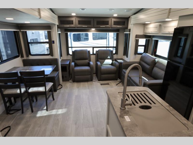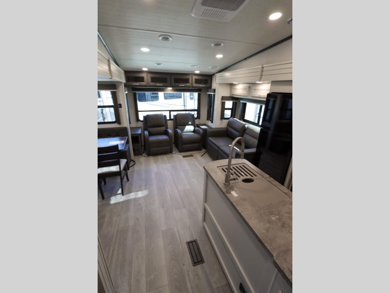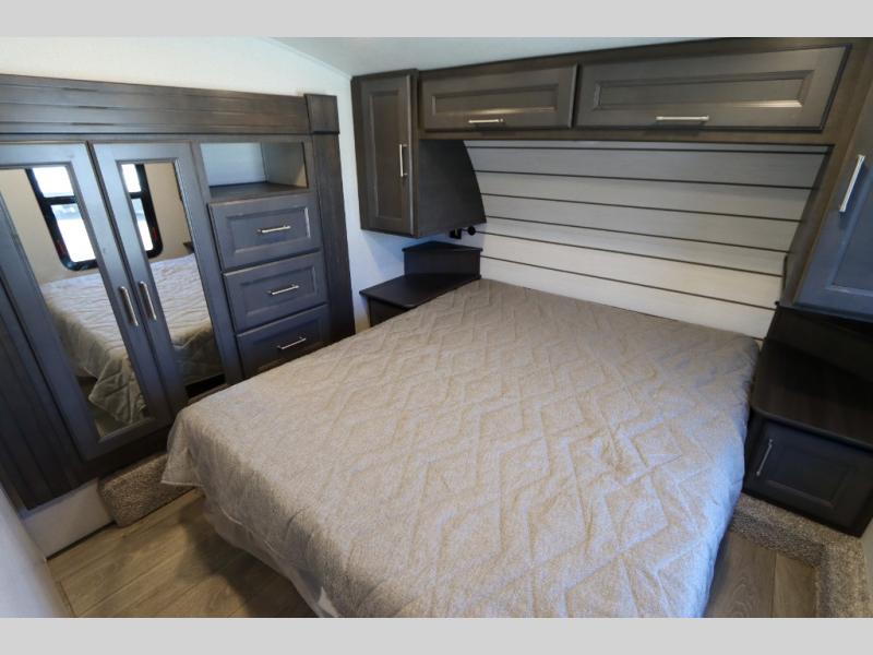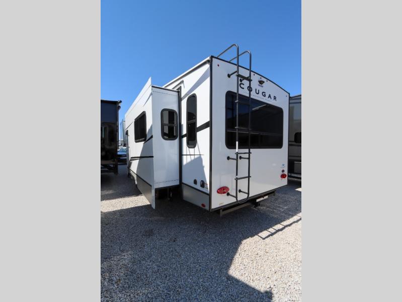 The Keystone Cougar Half-Ton fifth wheel and travel trailers are known as one of America's favorites for a reason! Some of those reasons are the exclusive features that come from Keystone, like the Winegard Air 360+ omni-directional rooftop antenna, the in-floor heating ducts, and the Hyper Deck flooring. The Cougar Half-Ton has a Climate Guard protection package to keep you safe during inclement weather, along with two roof attic vents, PEX plumbing and more. Use the 21" Furrion range with Piezo ignition to create all of those familiar meals from home, and enjoy endless hot showers with the Girard tankless on-demand water heater!