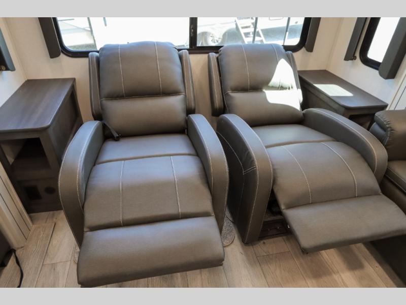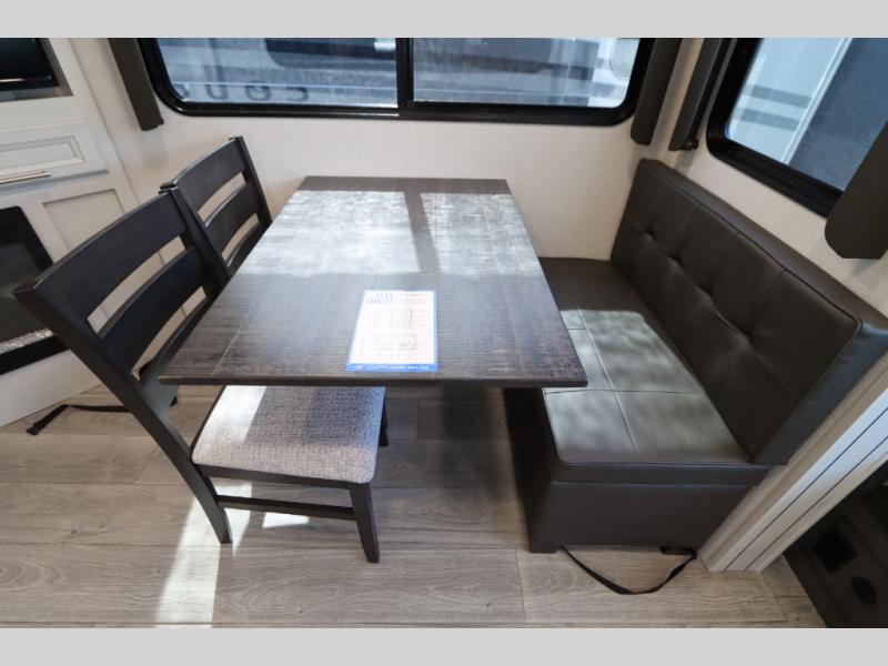 When you are ready to enjoy the fresh outdoor air, you'll want this Cougar Half-Ton fifth wheel to be there with you! The interior will feel spacious and comfortable because of the opposing slides, and you'll have plenty of seating to offer to any friends that stop by with the two recliners in the back, the booth dinette, and the 68" tri-fold sleeper sofa. You can sit down and chat, or you can head outside to grab some fresh air underneath the 10' power awning.