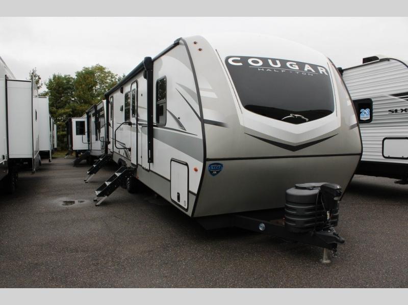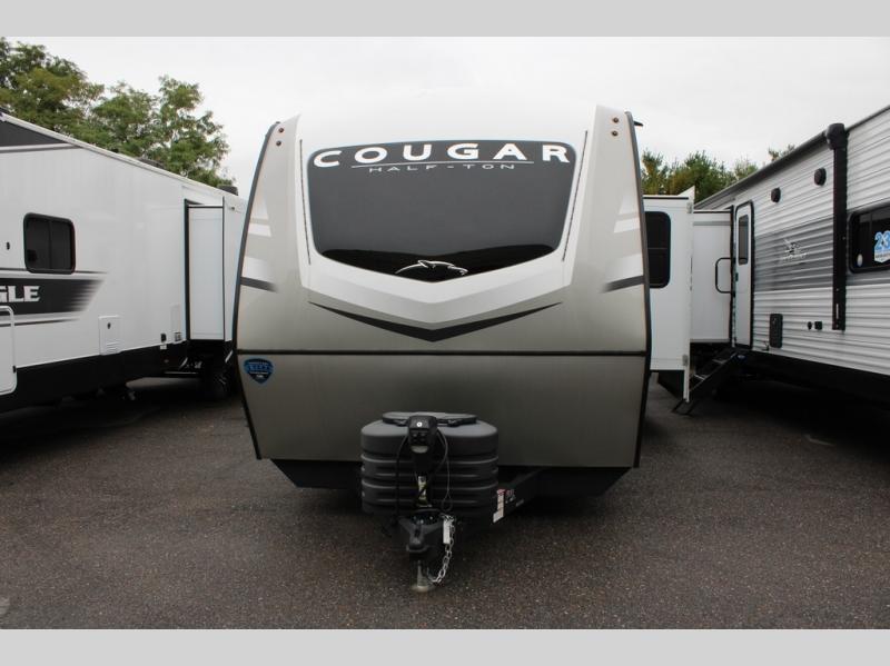 The Keystone Cougar Half-Ton fifth wheel and travel trailers are known as one of America's favorites for a reason! Some of those reasons are the exclusive features that come from Keystone, like the Winegard Air 360+ omni-directional rooftop antenna, the in-floor heating ducts, and the Hyper Deck flooring. The Cougar Half-Ton has a Climate Guard protection package to keep you safe during inclement weather, along with two roof attic vents, PEX plumbing and more. Use the 21" Furrion range with Piezo ignition to create all of those familiar meals from home, and enjoy endless hot showers with the Girard tankless on-demand water heater!