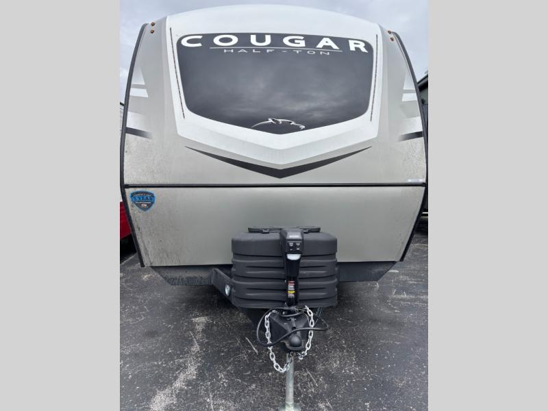 The Keystone Cougar Half-Ton fifth wheel and travel trailers are known as one of America's favorites for a reason! Some of those reasons are the exclusive features that come from Keystone, like the Winegard Air 360+ omni-directional rooftop antenna, the in-floor heating ducts, and the Hyper Deck flooring. The Cougar Half-Ton has a Climate Guard protection package to keep you safe during inclement weather, along with two roof attic vents, PEX plumbing and more. Use the 21" Furrion range with Piezo ignition to create all of those familiar meals from home, and enjoy endless hot showers with the Girard tankless on-demand water heater!