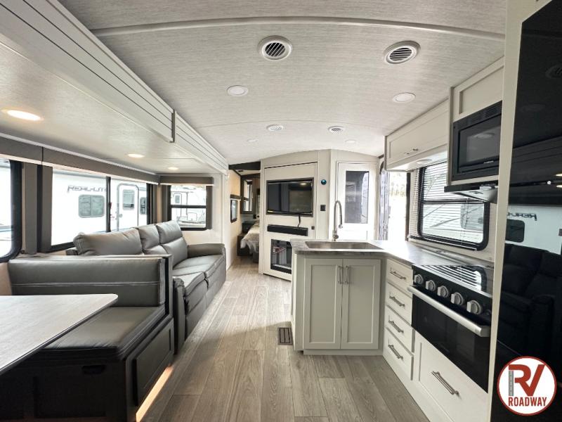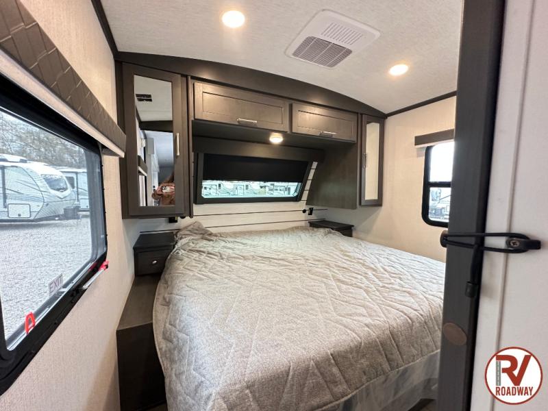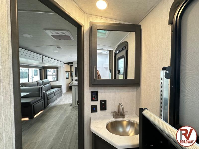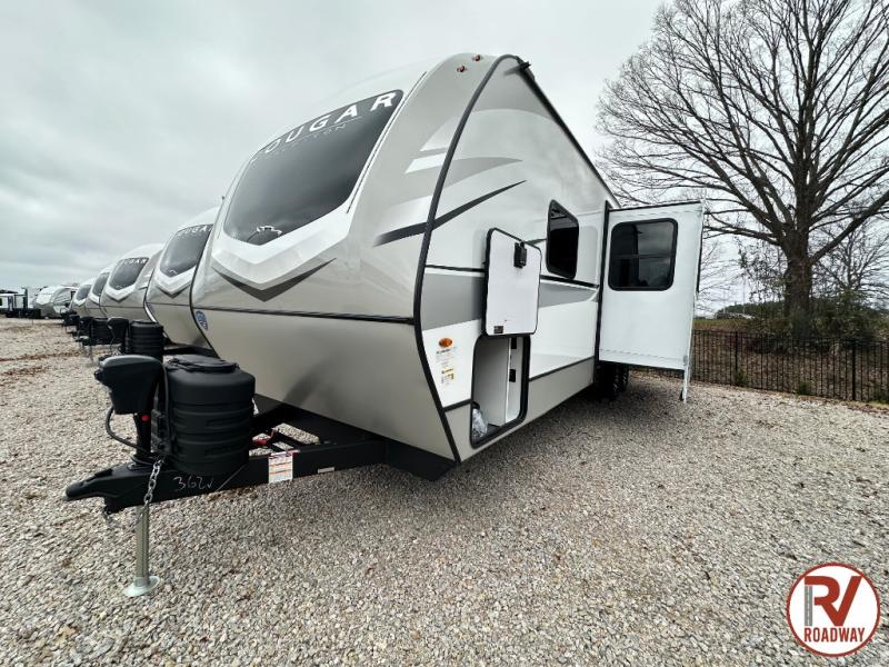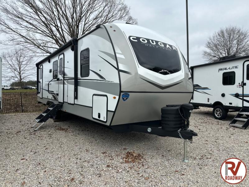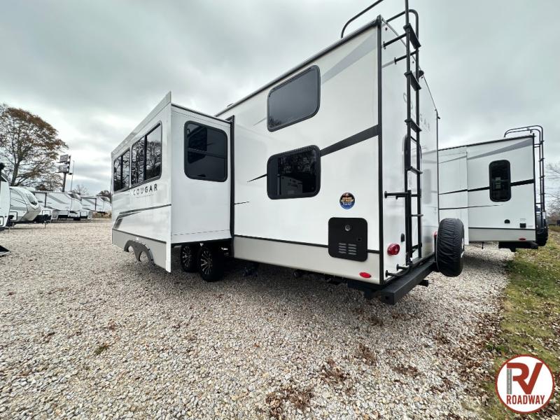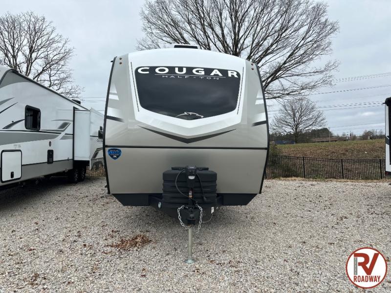 The Keystone Cougar Half-Ton fifth wheel and travel trailers are known as one of America's favorites for a reason! Some of those reasons are the exclusive features that come from Keystone, like the Winegard Air 360+ omni-directional rooftop antenna, the in-floor heating ducts, and the Hyper Deck flooring. The Cougar Half-Ton has a Climate Guard protection package to keep you safe during inclement weather, along with two roof attic vents, PEX plumbing and more. Use the 21" Furrion range with Piezo ignition to create all of those familiar meals from home, and enjoy endless hot showers with the Girard tankless on-demand water heater!