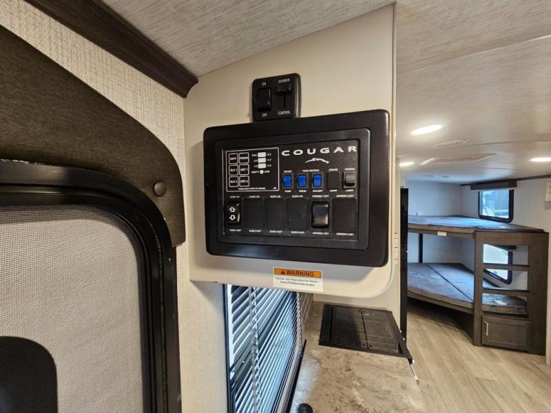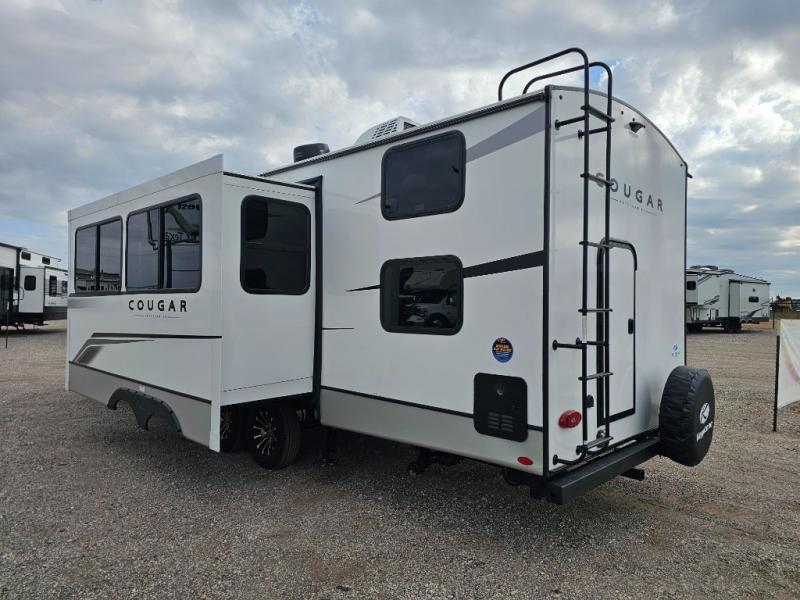 The Keystone Cougar Half-Ton fifth wheel and travel trailers are known as one of America's favorites for a reason! Some of those reasons are the exclusive features that come from Keystone, like the Winegard Air 360+ omni-directional rooftop antenna, the in-floor heating ducts, and the Hyper Deck flooring. The Cougar Half-Ton has a Climate Guard protection package to keep you safe during inclement weather, along with two roof attic vents, PEX plumbing and more. Use the 21" Furrion range with Piezo ignition to create all of those familiar meals from home, and enjoy endless hot showers with the Girard tankless on-demand water heater!