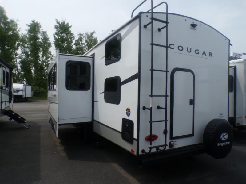 The Keystone Cougar Half-Ton fifth wheel and travel trailers are known as one of America's favorites for a reason! Some of those reasons are the exclusive features that come from Keystone, like the Winegard Air 360+ omni-directional rooftop antenna, the in-floor heating ducts, and the Hyper Deck flooring. The Cougar Half-Ton has a Climate Guard protection package to keep you safe during inclement weather, along with two roof attic vents, PEX plumbing and more. Use the 17" Furrion range with Piezo ignition to create all of those familiar meals from home, and enjoy endless hot showers with the Girard tankless on-demand water heater!