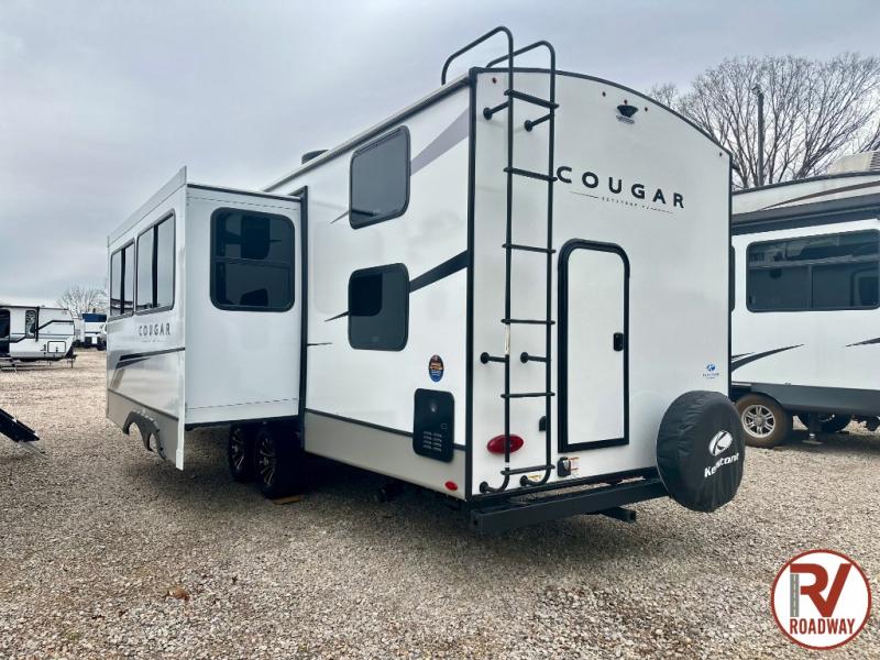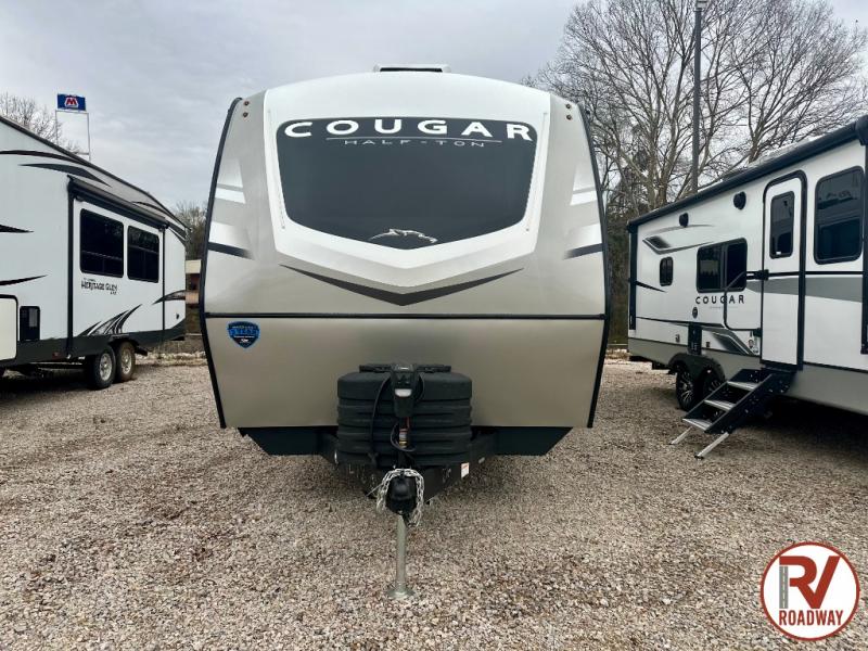 The Keystone Cougar Half-Ton fifth wheel and travel trailers are known as one of America's favorites for a reason! Some of those reasons are the exclusive features that come from Keystone, like the Winegard Air 360+ omni-directional rooftop antenna, the in-floor heating ducts, and the Hyper Deck flooring. The Cougar Half-Ton has a Climate Guard protection package to keep you safe during inclement weather, along with two roof attic vents, PEX plumbing and more. Use the 21" Furrion range with Piezo ignition to create all of those familiar meals from home, and enjoy endless hot showers with the Girard tankless on-demand water heater!