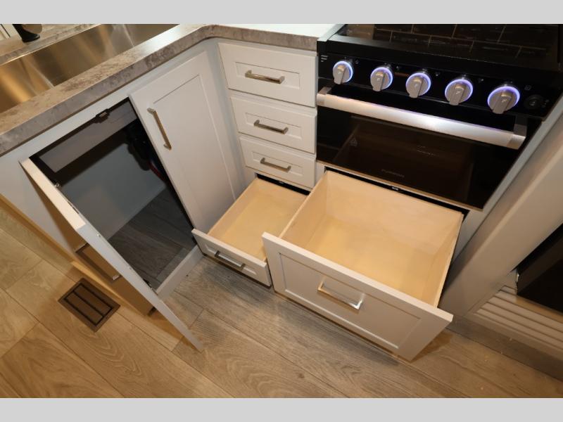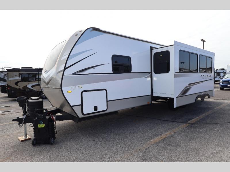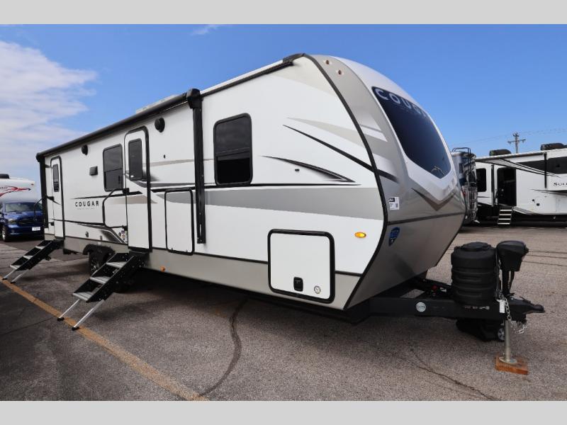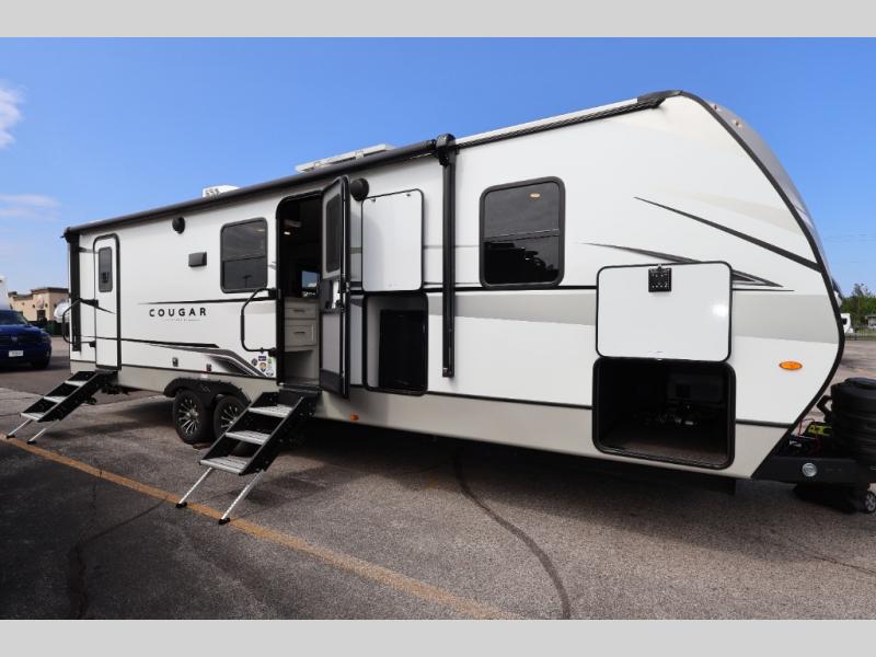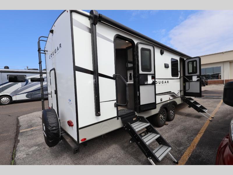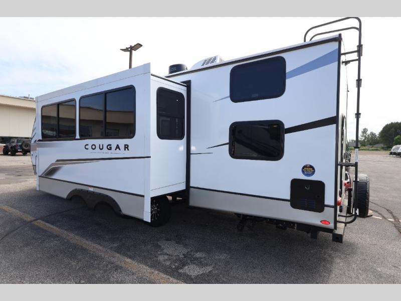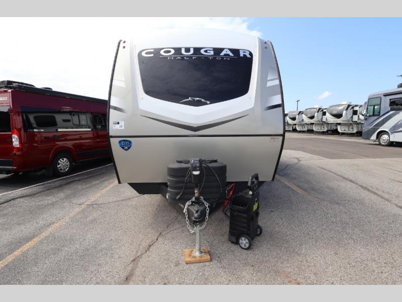 The Keystone Cougar Half-Ton fifth wheel and travel trailers are known as one of America's favorites for a reason! Some of those reasons are the exclusive features that come from Keystone, like the Winegard Air 360+ omni-directional rooftop antenna, the in-floor heating ducts, and the Hyper Deck flooring. The Cougar Half-Ton has a Climate Guard protection package to keep you safe during inclement weather, along with two roof attic vents, PEX plumbing and more. Use the 21" Furrion range with Piezo ignition to create all of those familiar meals from home, and enjoy endless hot showers with the Girard tankless on-demand water heater!