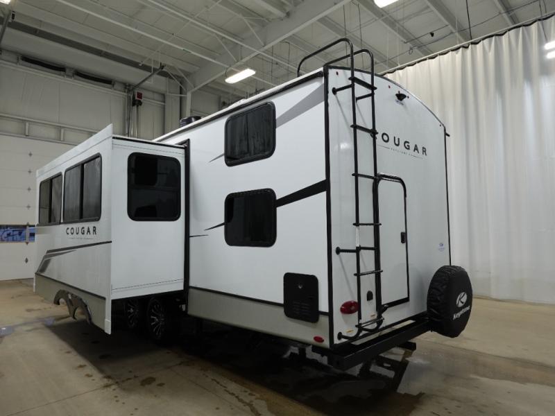 The Keystone Cougar Half-Ton fifth wheel and travel trailers are known as one of America's favorites for a reason! Some of those reasons are the exclusive features that come from Keystone, like the Winegard Air 360+ omni-directional rooftop antenna, the in-floor heating ducts, and the Hyper Deck flooring. The Cougar Half-Ton has a Climate Guard protection package to keep you safe during inclement weather, along with two roof attic vents, PEX plumbing and more. Use the 17" Furrion range with Piezo ignition to create all of those familiar meals from home, and enjoy endless hot showers with the Girard tankless on-demand water heater!