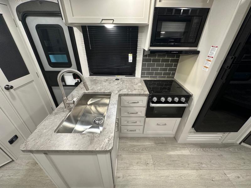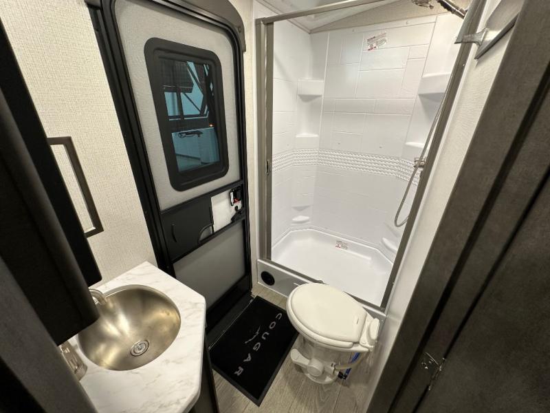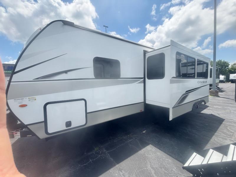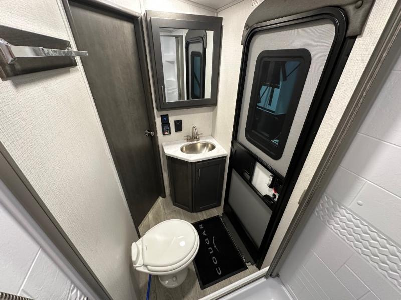 The Keystone Cougar Half-Ton fifth wheel and travel trailers are known as one of America's favorites for a reason! Some of those reasons are the exclusive features that come from Keystone, like the Winegard Air 360+ omni-directional rooftop antenna, the in-floor heating ducts, and the Hyper Deck flooring. The Cougar Half-Ton has a Climate Guard protection package to keep you safe during inclement weather, along with two roof attic vents, PEX plumbing and more. Use the 17" Furrion range with Piezo ignition to create all of those familiar meals from home, and enjoy endless hot showers with the Girard tankless on-demand water heater!