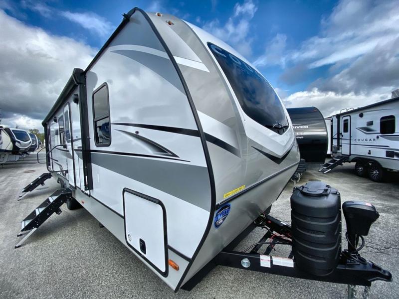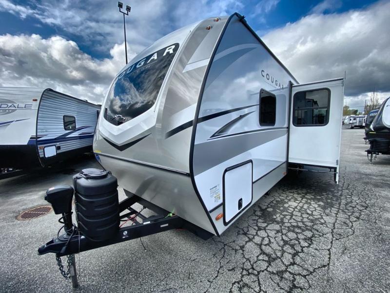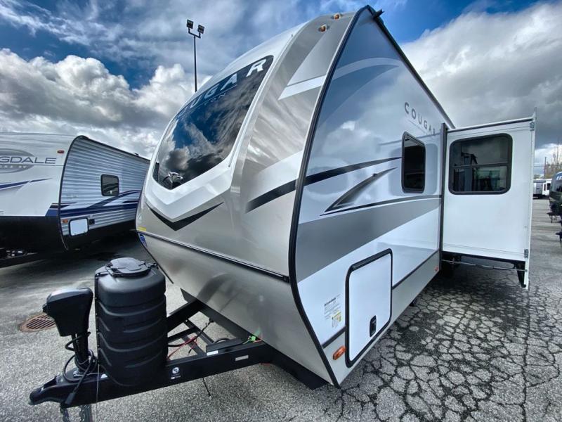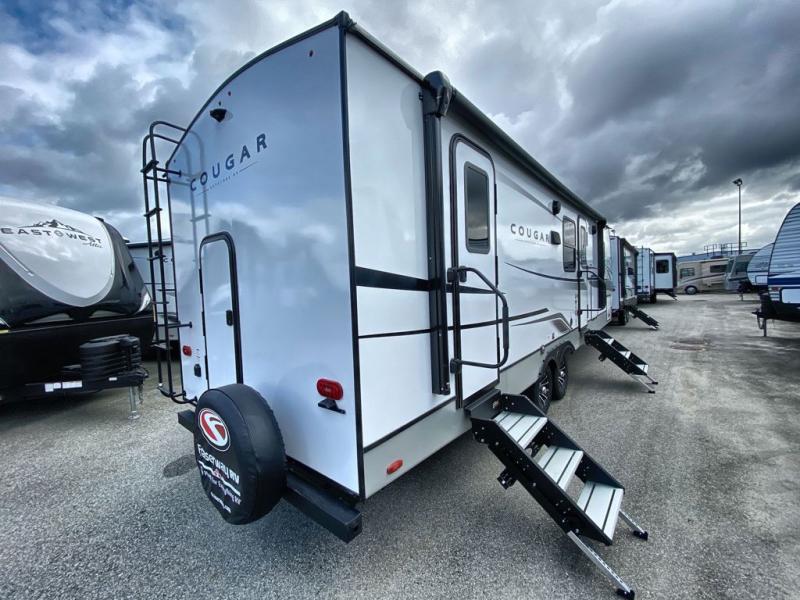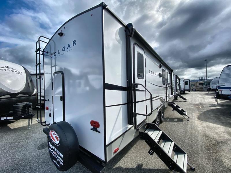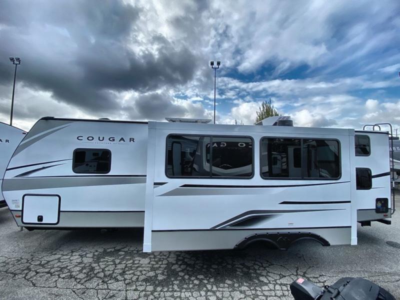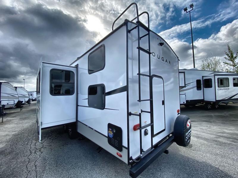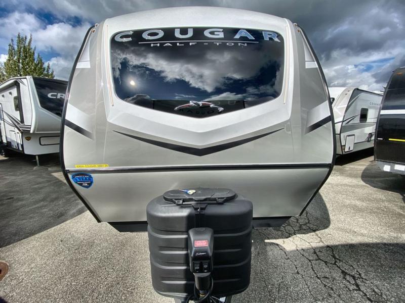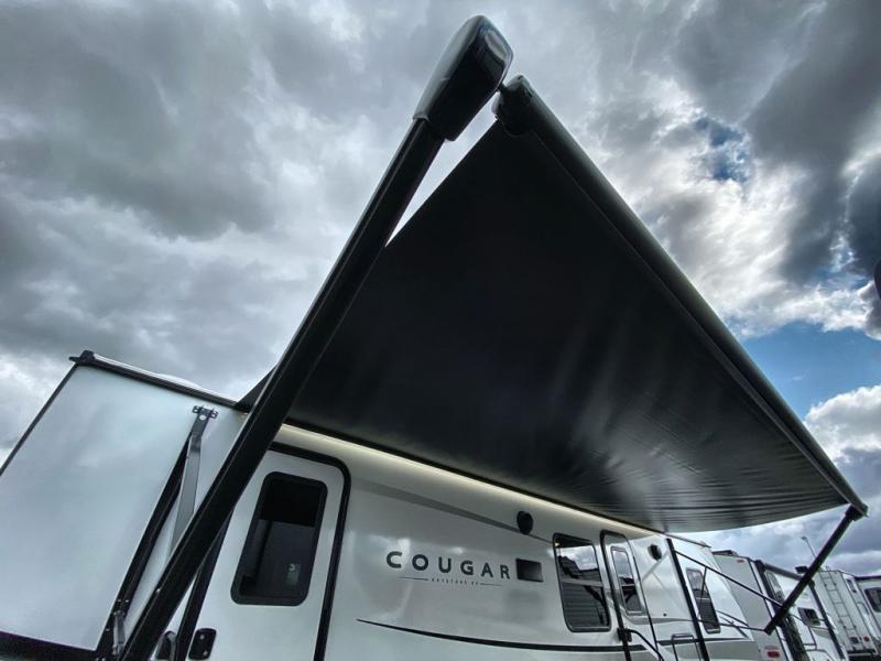The Keystone Cougar Half-Ton fifth wheel and travel trailers are known as one of America's favorites for a reason! Some of those reasons are the exclusive features that come from Keystone, like the Winegard Air 360+ omni-directional rooftop antenna, the in-floor heating ducts, and the Hyper Deck flooring. The Cougar Half-Ton has a Climate Guard protection package to keep you safe during inclement weather, along with two roof attic vents, PEX plumbing and more. Use the 17" Furrion range with Piezo ignition to create all of those familiar meals from home, and enjoy endless hot showers with the Girard tankless on-demand water heater!