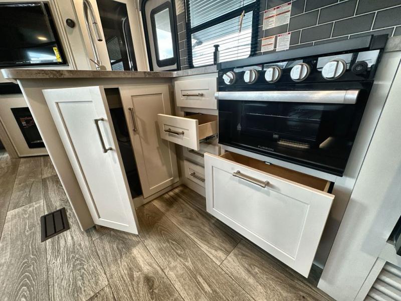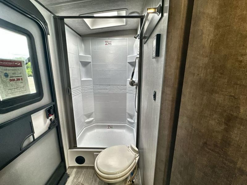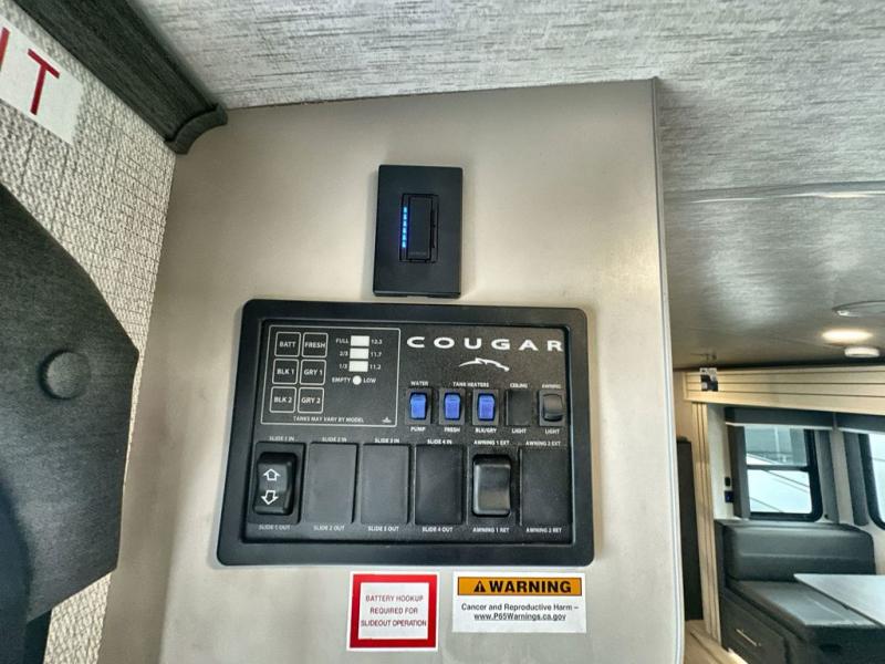 The Keystone Cougar Half-Ton fifth wheel and travel trailers are known as one of America's favorites for a reason! Some of those reasons are the exclusive features that come from Keystone, like the Winegard Air 360+ omni-directional rooftop antenna, the in-floor heating ducts, and the Hyper Deck flooring. The Cougar Half-Ton has a Climate Guard protection package to keep you safe during inclement weather, along with two roof attic vents, PEX plumbing and more. Use the 17" Furrion range with Piezo ignition to create all of those familiar meals from home, and enjoy endless hot showers with the Girard tankless on-demand water heater!