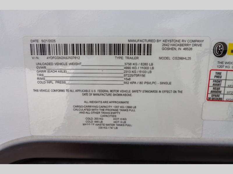New 2025 Keystone RV Cougar Half-Ton 29BHL Fifth Wheel