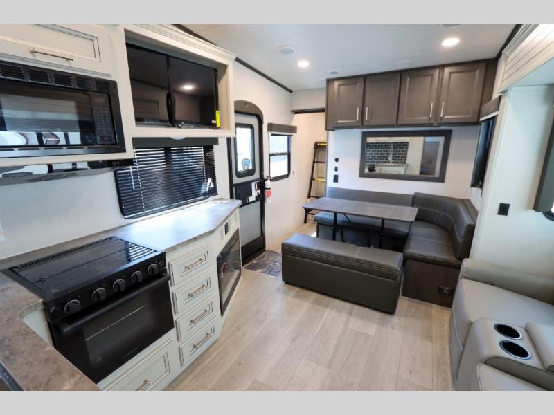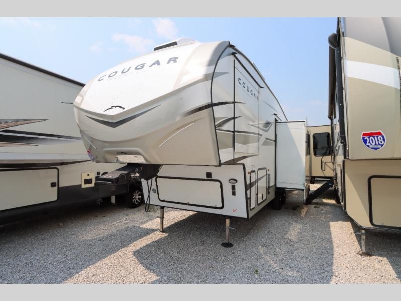 The Keystone Cougar Half-Ton fifth wheel and travel trailers are known as one of America's favorites for a reason! Some of those reasons are the exclusive features that come from Keystone, like the Winegard Air 360+ omni-directional rooftop antenna, the in-floor heating ducts, and the Hyper Deck flooring. The Cougar Half-Ton has a Climate Guard protection package to keep you safe during inclement weather, along with two roof attic vents, PEX plumbing and more. Use the 21" Furrion range with Piezo ignition to create all of those familiar meals from home, and enjoy endless hot showers with the Girard tankless on-demand water heater!