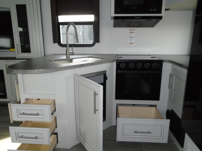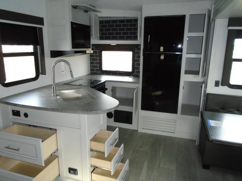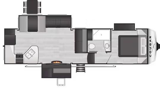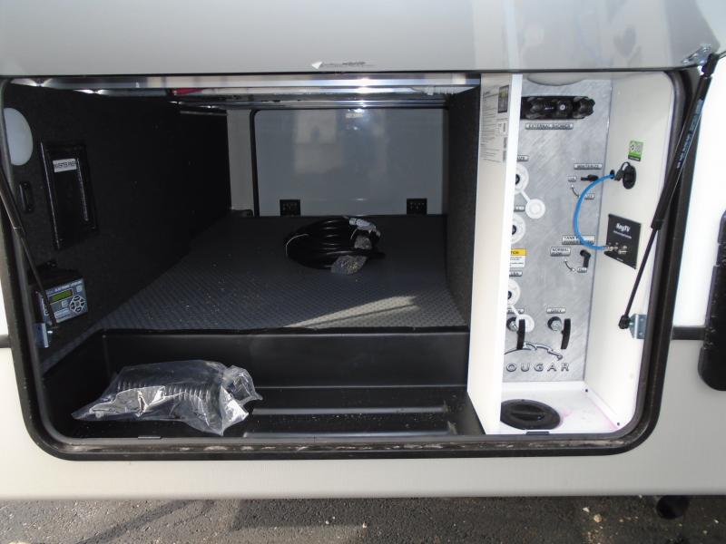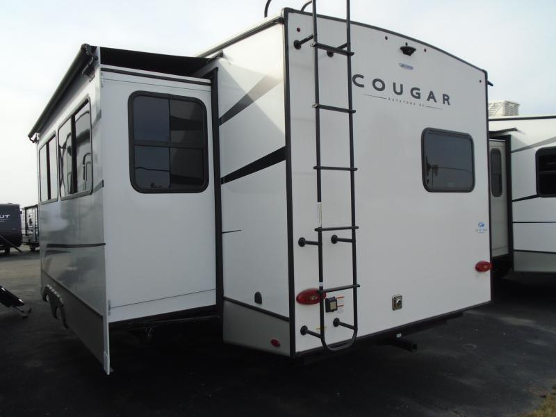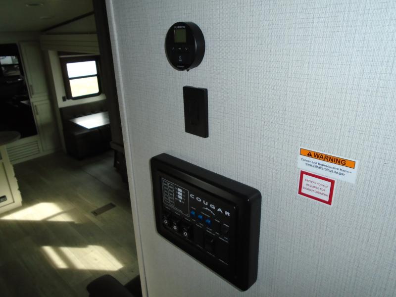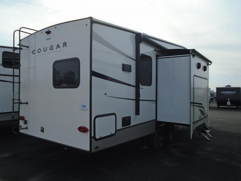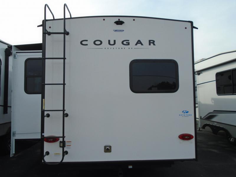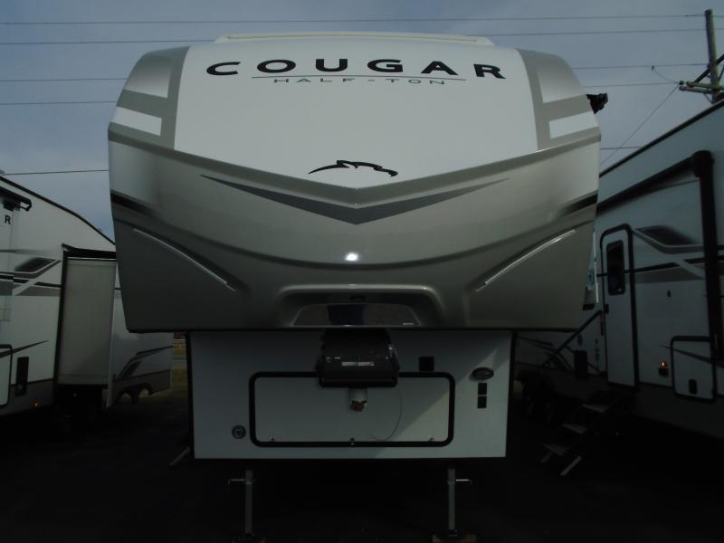 The Keystone Cougar Half-Ton fifth wheel and travel trailers are known as one of America's favorites for a reason! Some of those reasons are the exclusive features that come from Keystone, like the Winegard Air 360+ omni-directional rooftop antenna, the in-floor heating ducts, and the Hyper Deck flooring. The Cougar Half-Ton has a Climate Guard protection package to keep you safe during inclement weather, along with two roof attic vents, PEX plumbing and more. Use the 21" Furrion range with Piezo ignition to create all of those familiar meals from home, and enjoy endless hot showers with the Girard tankless on-demand water heater!