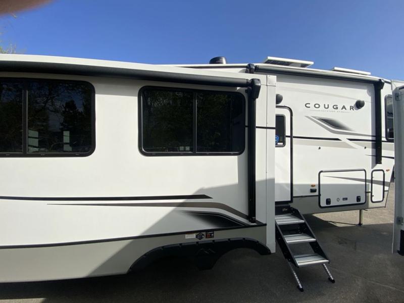The Keystone Cougar Half-Ton fifth wheel and travel trailers are known as one of America's favorites for a reason! Some of those reasons are the exclusive features that come from Keystone, like the Winegard Air 360+ omni-directional rooftop antenna, the in-floor heating ducts, and the Hyper Deck flooring. The Cougar Half-Ton has a Climate Guard protection package to keep you safe during inclement weather, along with two roof attic vents, PEX plumbing and more. Use the 21" Furrion range with Piezo ignition to create all of those familiar meals from home, and enjoy endless hot showers with the Girard tankless on-demand water heater!