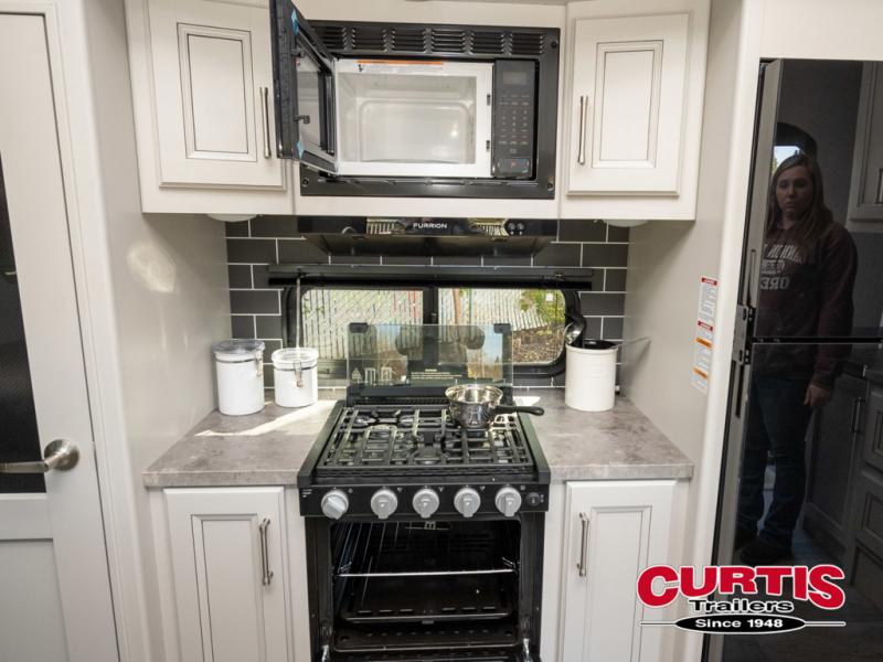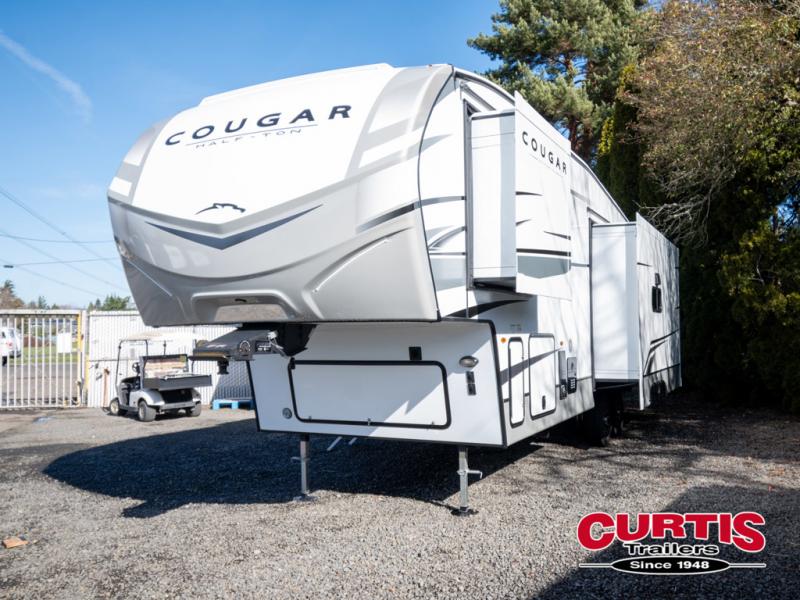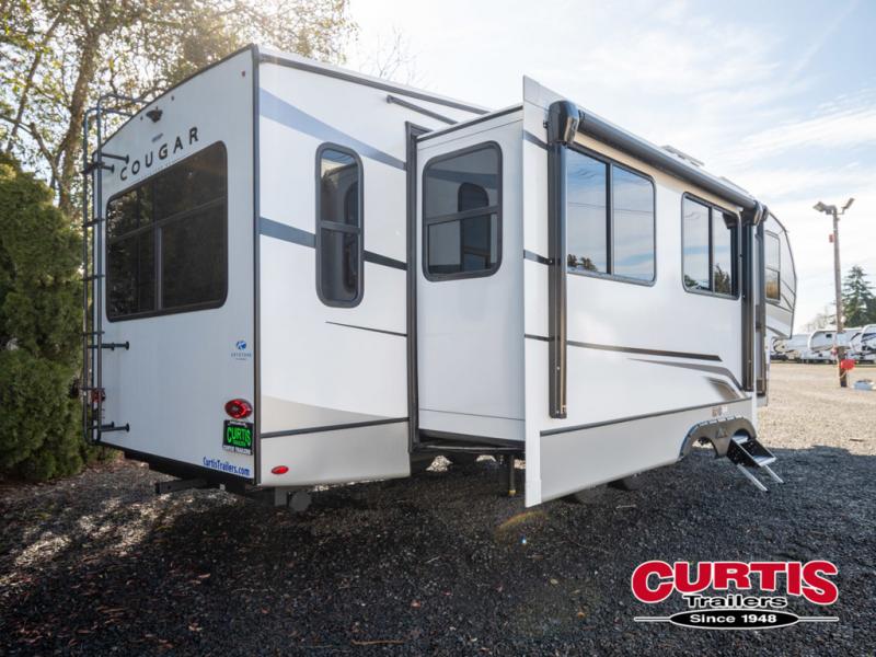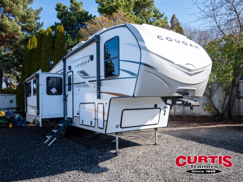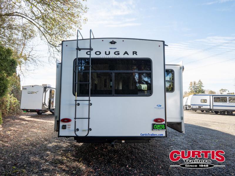 The Keystone Cougar Half-Ton fifth wheel and travel trailers are known as one of America's favorites for a reason! Some of those reasons are the exclusive features that come from Keystone, like the Winegard Air 360+ omni-directional rooftop antenna, the in-floor heating ducts, and the Hyper Deck flooring. The Cougar Half-Ton has a Climate Guard protection package to keep you safe during inclement weather, along with two roof attic vents, PEX plumbing and more. Use the 21" Furrion range with Piezo ignition to create all of those familiar meals from home, and enjoy endless hot showers with the Girard tankless on-demand water heater!