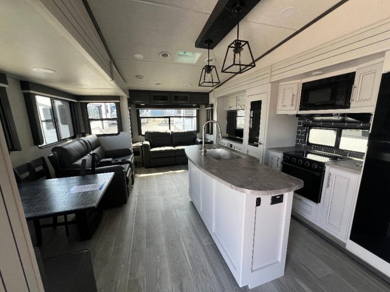 The Keystone Cougar Half-Ton fifth wheel and travel trailers are known as one of America's favorites for a reason! Some of those reasons are the exclusive features that come from Keystone, like the Winegard Air 360+ omni-directional rooftop antenna, the in-floor heating ducts, and the Hyper Deck flooring. The Cougar Half-Ton has a Climate Guard protection package to keep you safe during inclement weather, along with two roof attic vents, PEX plumbing and more. Use the 21" Furrion range with Piezo ignition to create all of those familiar meals from home, and enjoy endless hot showers with the Girard tankless on-demand water heater!