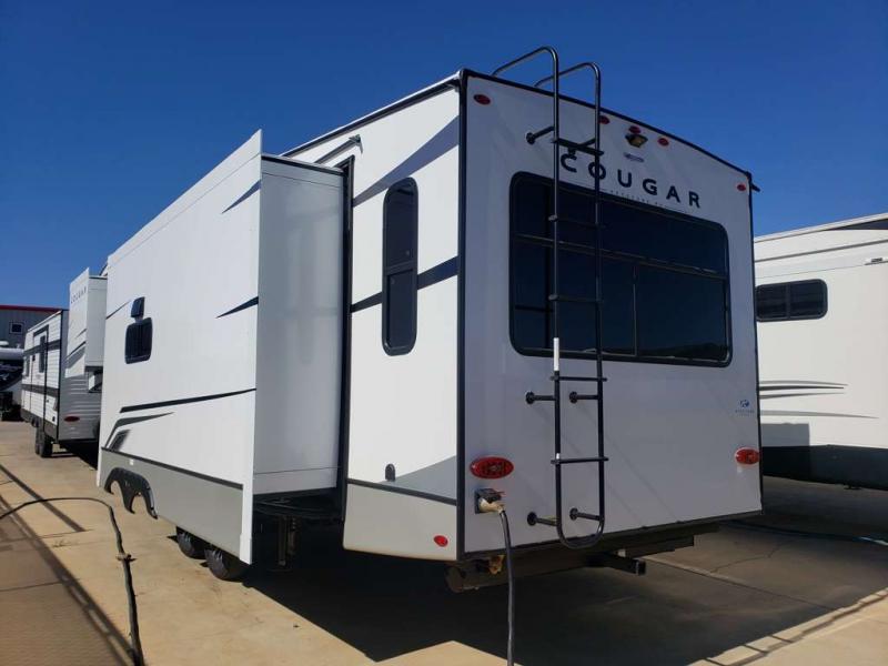 The Keystone Cougar Half-Ton fifth wheel and travel trailers are known as one of America's favorites for a reason! Some of those reasons are the exclusive features that come from Keystone, like the Winegard Air 360+ omni-directional rooftop antenna, the in-floor heating ducts, and the Hyper Deck flooring. The Cougar Half-Ton has a Climate Guard protection package to keep you safe during inclement weather, along with two roof attic vents, PEX plumbing and more. Use the 21" Furrion range with Piezo ignition to create all of those familiar meals from home, and enjoy endless hot showers with the Girard tankless on-demand water heater!