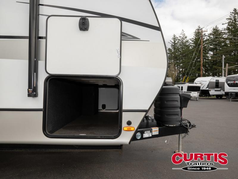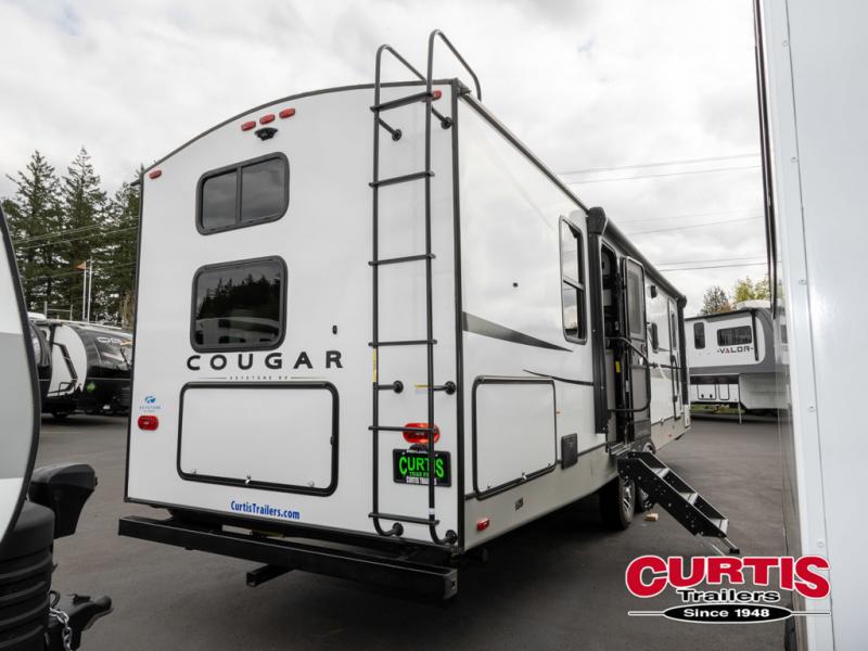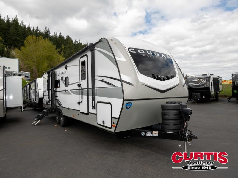 The Keystone Cougar Half-Ton fifth wheel and travel trailers are known as one of America's favorites for a reason! Some of those reasons are the exclusive features that come from Keystone, like the Winegard Air 360+ omni-directional rooftop antenna, the in-floor heating ducts, and the Hyper Deck flooring. The Cougar Half-Ton has a Climate Guard protection package to keep you safe during inclement weather, along with two roof attic vents, PEX plumbing and more. Use the 21" Furrion range with Piezo ignition to create all of those familiar meals from home, and enjoy endless hot showers with the Girard tankless on-demand water heater!
