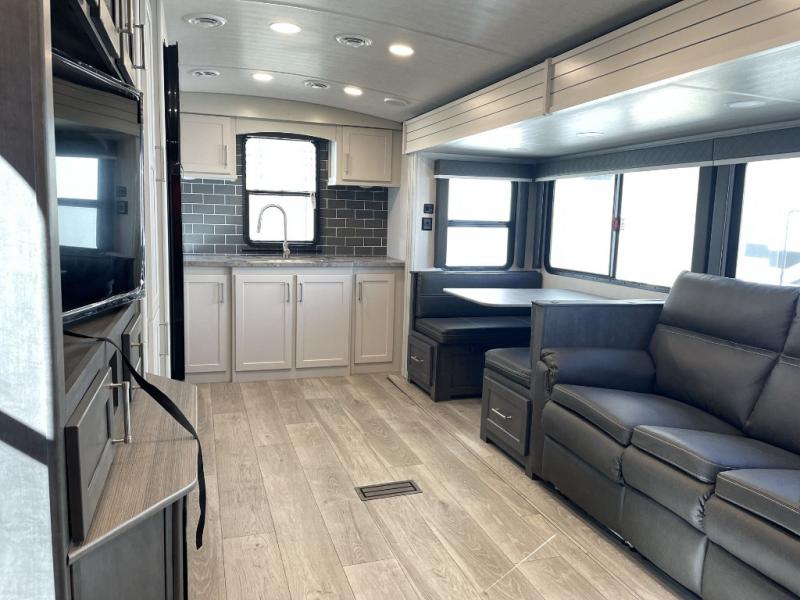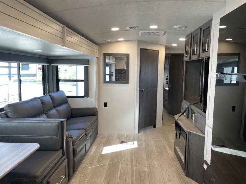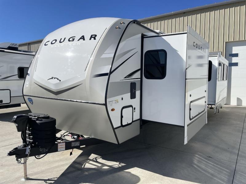 The Keystone Cougar Half-Ton fifth wheel and travel trailers are known as one of America's favorites for a reason! Some of those reasons are the exclusive features that come from Keystone, like the Winegard Air 360+ omni-directional rooftop antenna, the in-floor heating ducts, and the Hyper Deck flooring. The Cougar Half-Ton has a Climate Guard protection package to keep you safe during inclement weather, along with two roof attic vents, PEX plumbing and more. Use the 17" Furrion range with Piezo ignition to create all of those familiar meals from home, and enjoy endless hot showers with the Girard tankless on-demand water heater!
