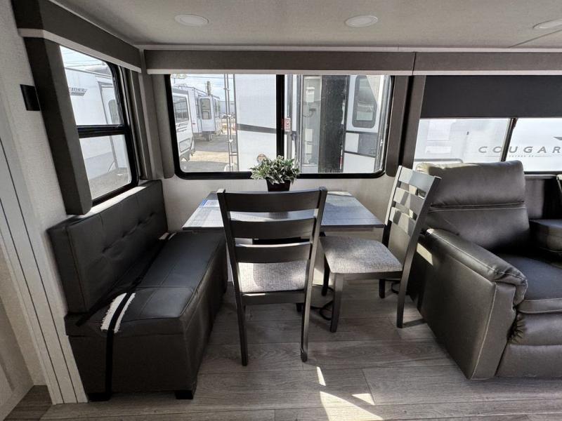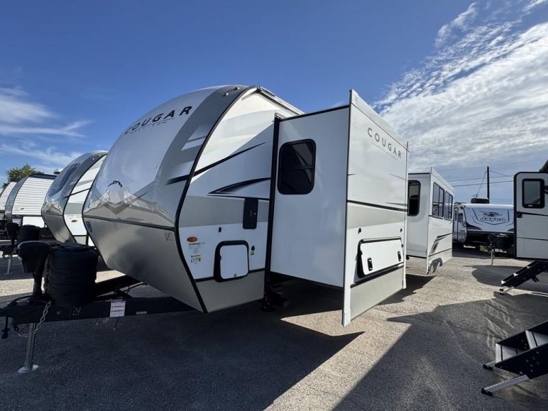The Keystone Cougar Half-Ton fifth wheel and travel trailers are known as one of America's favorites for a reason! Some of those reasons are the exclusive features that come from Keystone, like the Winegard Air 360+ omni-directional rooftop antenna, the in-floor heating ducts, and the Hyper Deck flooring. The Cougar Half-Ton has a Climate Guard protection package to keep you safe during inclement weather, along with two roof attic vents, PEX plumbing and more. Use the 17" Furrion range with Piezo ignition to create all of those familiar meals from home, and enjoy endless hot showers with the Girard tankless on-demand water heater!