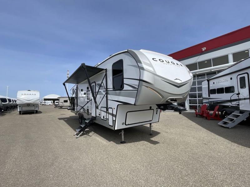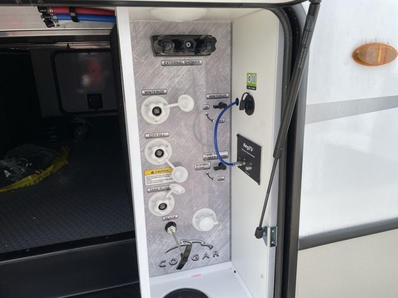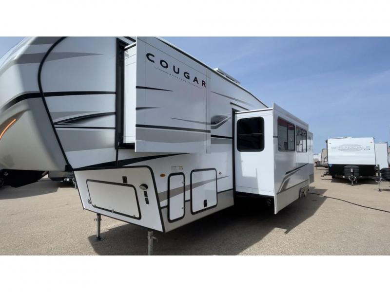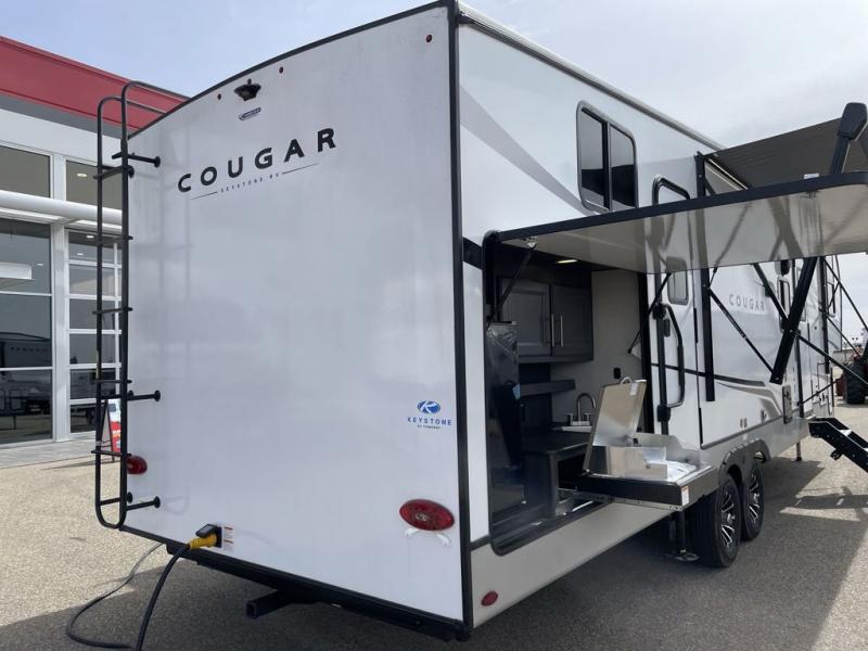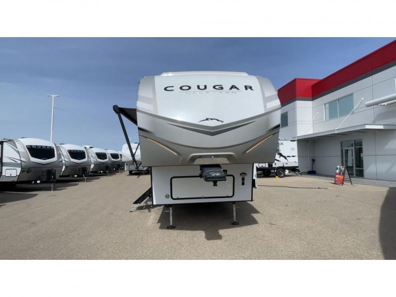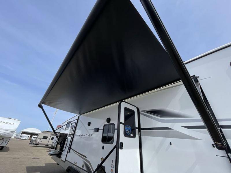 The Keystone Cougar Half-Ton fifth wheel and travel trailers are known as one of America's favorites for a reason! Some of those reasons are the exclusive features that come from Keystone, like the Winegard Air 360+ omni-directional rooftop antenna, the in-floor heating ducts, and the Hyper Deck flooring. The Cougar Half-Ton has a Climate Guard protection package to keep you safe during inclement weather, along with two roof attic vents, PEX plumbing and more. Use the 21" Furrion range with Piezo ignition to create all of those familiar meals from home, and enjoy endless hot showers with the Girard tankless on-demand water heater!
