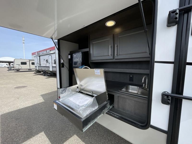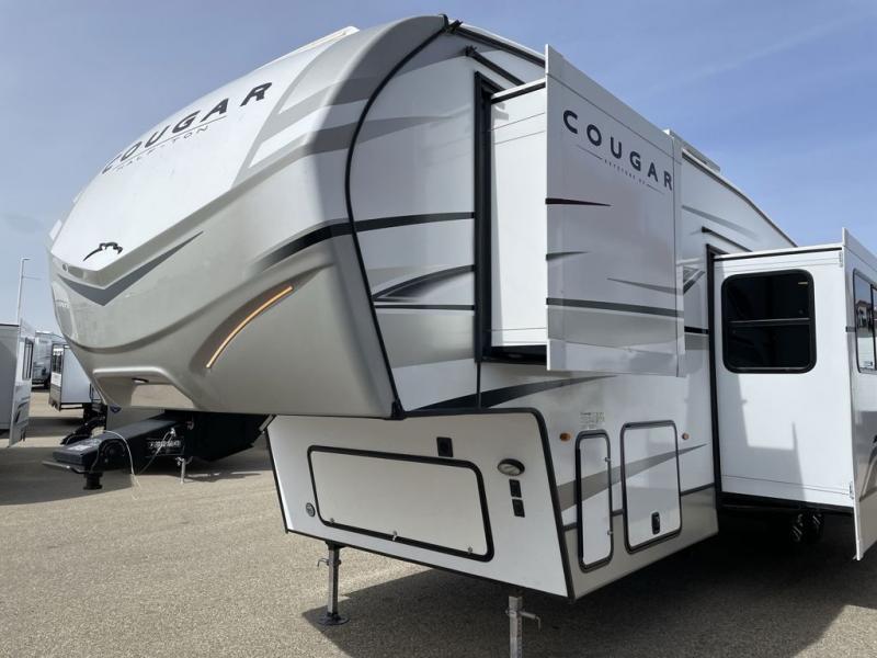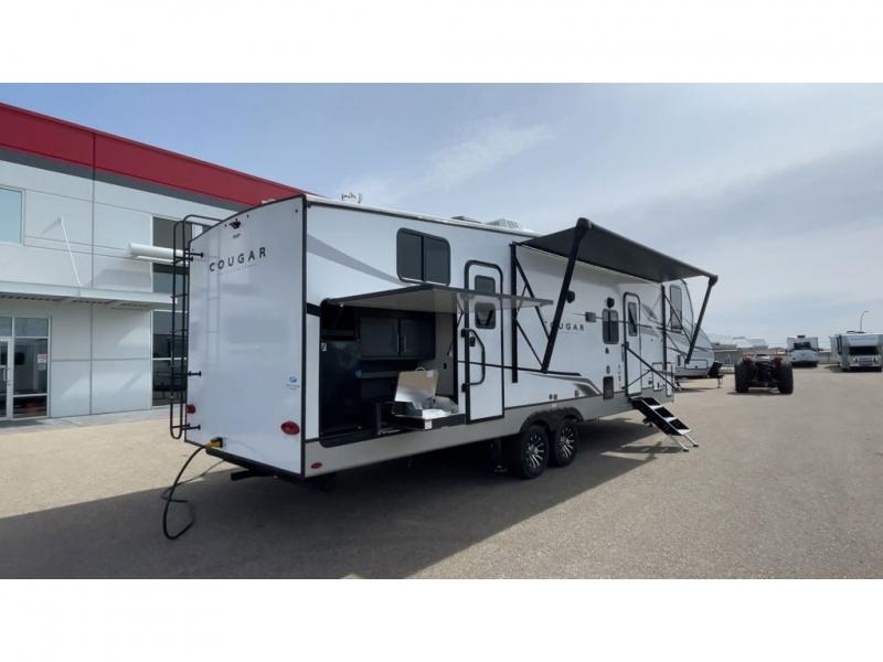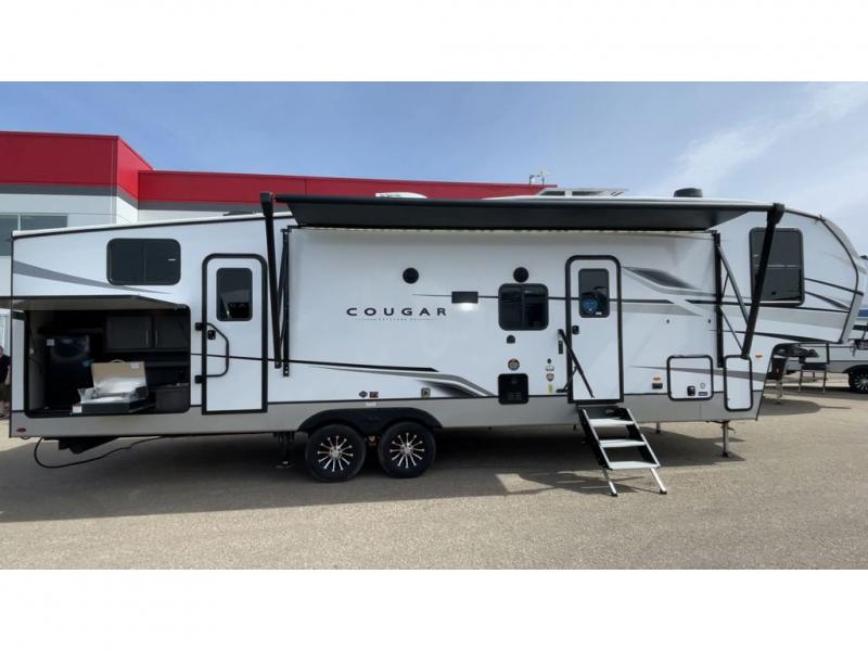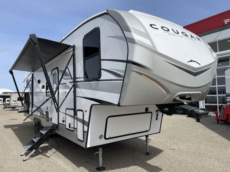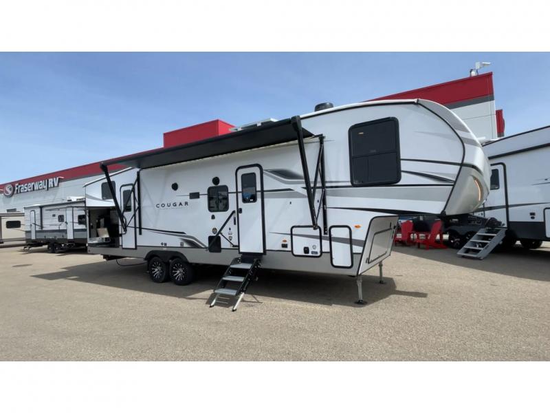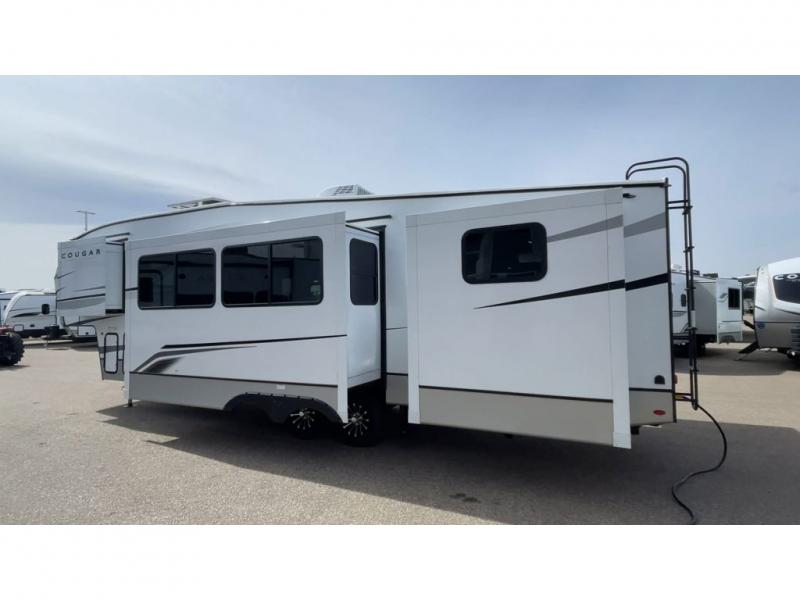 The Keystone Cougar Half-Ton fifth wheel and travel trailers are known as one of America's favorites for a reason! Some of those reasons are the exclusive features that come from Keystone, like the Winegard Air 360+ omni-directional rooftop antenna, the in-floor heating ducts, and the Hyper Deck flooring. The Cougar Half-Ton has a Climate Guard protection package to keep you safe during inclement weather, along with two roof attic vents, PEX plumbing and more. Use the 21" Furrion range with Piezo ignition to create all of those familiar meals from home, and enjoy endless hot showers with the Girard tankless on-demand water heater!