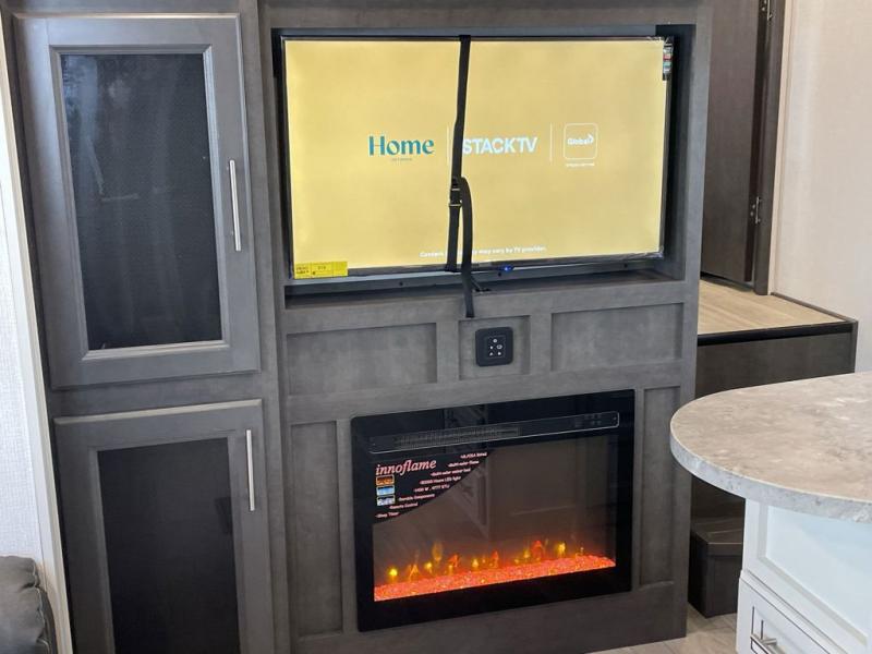 You won't have any trouble convincing your friends or family to join you on an adventure with this Cougar Half-Ton fifth wheel! Since this unit has both a full and a half bathroom, it will be easy for everyone to get ready in the morning, and the 21" Furrion range will allow you to whip up a full batch of pancakes for your guests. Store any leftovers in the 10.4 cu. ft.12V refrigerator before heading out on your next exciting expedition. If you need your backpacks and hiking gear, you can grab them from the exterior pass-through storage, and you will enjoy the cozy living space with the fireplace!