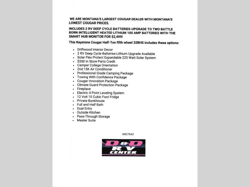 WE ARE MONTANA'S LARGEST COUGAR DEALER WITH MONTANA'S LOWEST COUGAR PRICES.