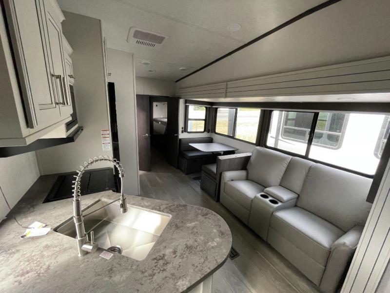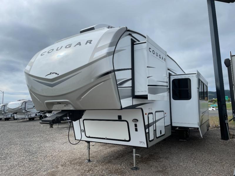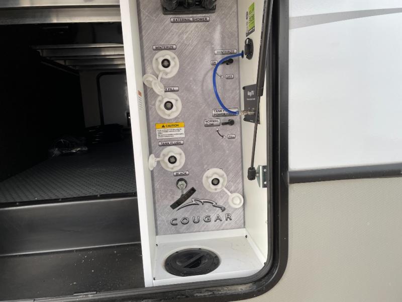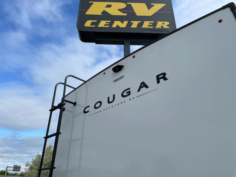 The Keystone Cougar Half-Ton fifth wheel and travel trailers are known as one of America's favorites for a reason! Some of those reasons are the exclusive features that come from Keystone, like the Winegard Air 360+ omni-directional rooftop antenna, the in-floor heating ducts, and the Hyper Deck flooring. The Cougar Half-Ton has a Climate Guard protection package to keep you safe during inclement weather, along with two roof attic vents, PEX plumbing and more. Use the 21" Furrion range with Piezo ignition to create all of those familiar meals from home, and enjoy endless hot showers with the Girard tankless on-demand water heater!