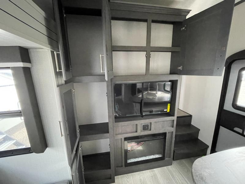 You won't have any trouble convincing your friends or family to join you on an adventure with this Cougar Half-Ton fifth wheel! Since this unit has both a full and a half bathroom, it will be easy for everyone to get ready in the morning, and the 21" Furrion range will allow you to whip up a full batch of pancakes for your guests. Store any leftovers in the 10.4 cu. ft.12V refrigerator before heading out on your next exciting expedition. If you need your backpacks and hiking gear, you can grab them from the exterior pass-through storage, and you will enjoy the cozy living space with the fireplace!