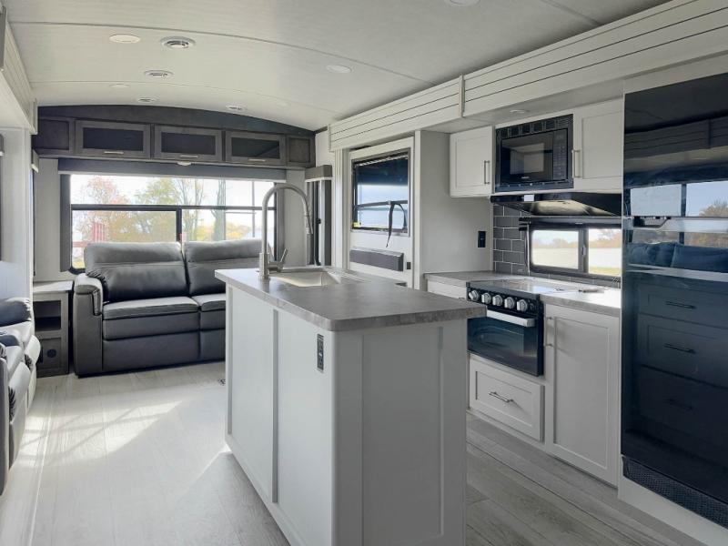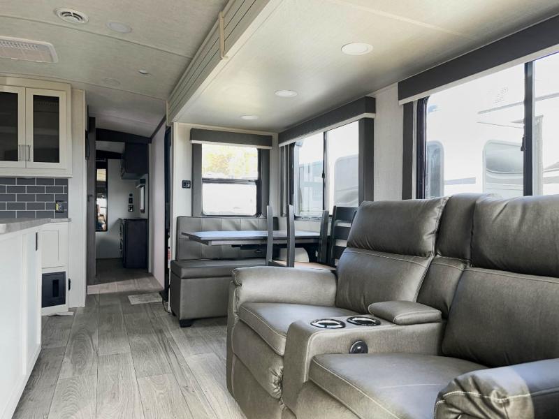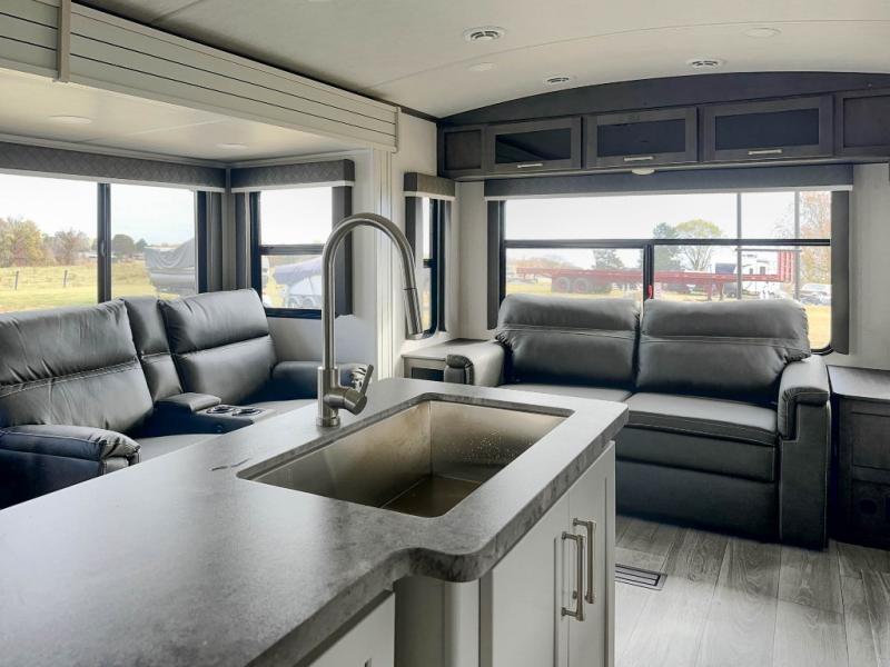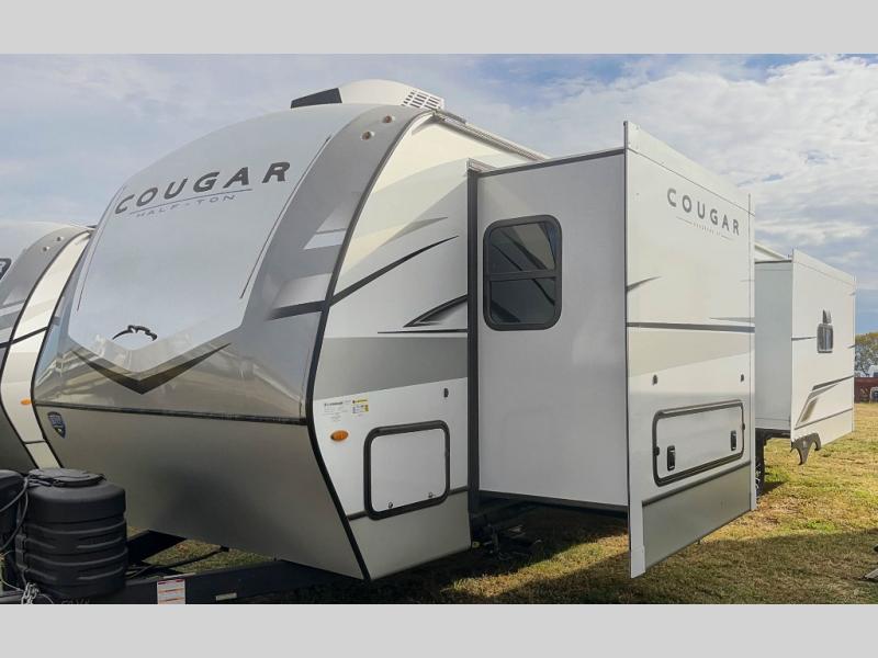 The Keystone Cougar Half-Ton fifth wheel and travel trailers are known as one of America's favorites for a reason! Some of those reasons are the exclusive features that come from Keystone, like the Winegard Air 360+ omni-directional rooftop antenna, the in-floor heating ducts, and the Hyper Deck flooring. The Cougar Half-Ton has a Climate Guard protection package to keep you safe during inclement weather, along with two roof attic vents, PEX plumbing and more. Use the 21" Furrion range with Piezo ignition to create all of those familiar meals from home, and enjoy endless hot showers with the Girard tankless on-demand water heater!