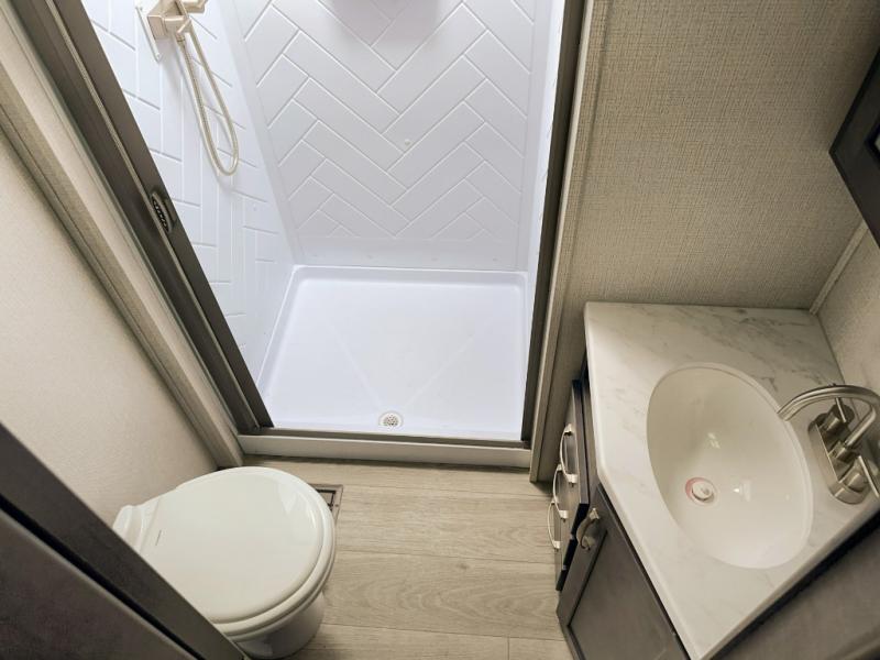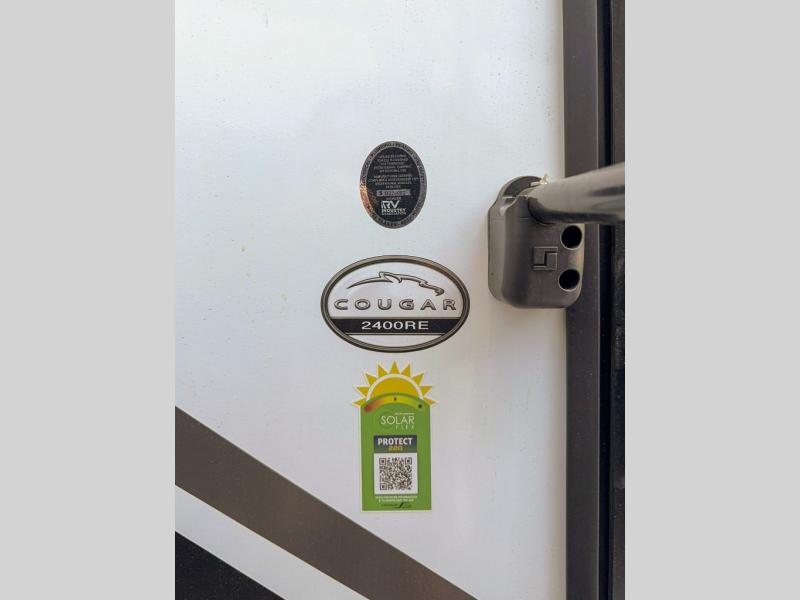 The Cougar Sport structural I-beam frame with stamped steel cross-members and outriggers, plus its laminated sidewalls with five-sided aluminum superstructure and Alpha Super Flex roof membrane are what active RVers love about the construction of the Cougar line. The Cougar Sport models are no exception when it comes to a great package, as well as being smaller and lighter weight than their big brother Cougar models. A one-piece, heated and enclosed polypropylene underbelly means a longer camping season. On the inside, residential shaker style hardwood cabinet doors and decorative crown molding, plus seamless pressed countertops and an on-demand water heater will make your unit feel even more like home. You are also sure to appreciate the shiplap style decorative accent wall behind the bed, a porcelain foot flush toilet in the bathroom, plus residential kitchen hardware, and so much more.