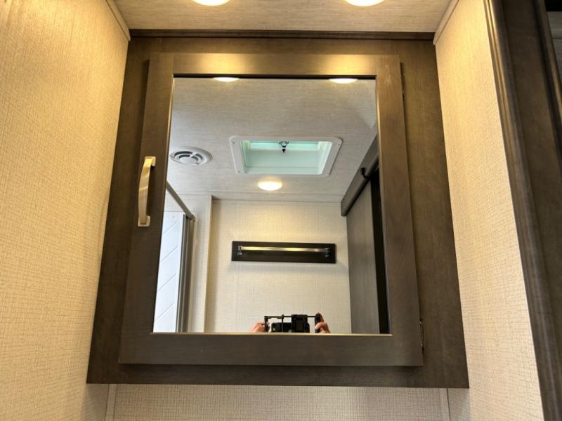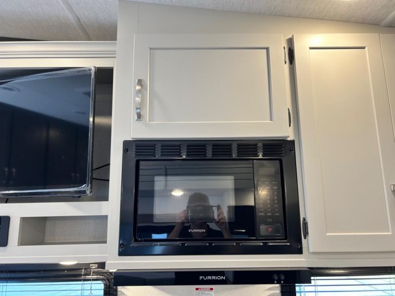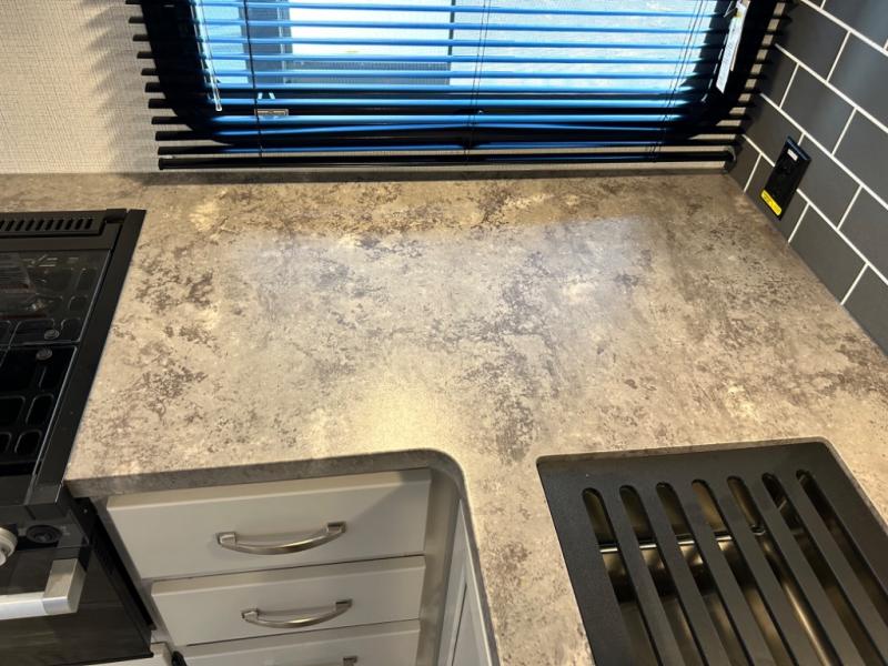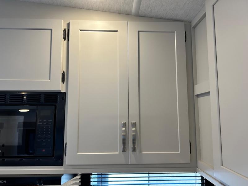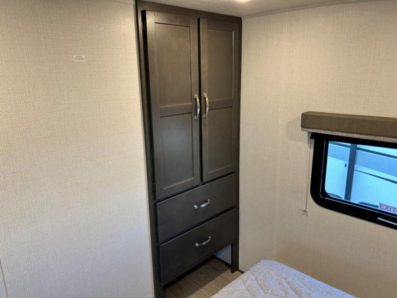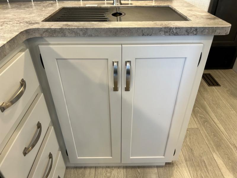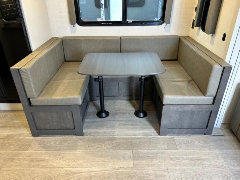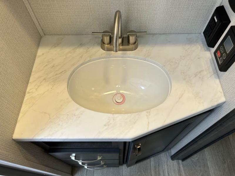 The Cougar Sport structural I-beam frame with stamped steel cross-members and outriggers, plus its laminated sidewalls with five-sided aluminum superstructure and Alpha Super Flex roof membrane are what active RVers love about the construction of the Cougar line. The Cougar Sport models are no exception when it comes to a great package, as well as being smaller and lighter weight than their big brother Cougar models. A one-piece, heated and enclosed polypropylene underbelly means a longer camping season. On the inside, residential shaker style hardwood cabinet doors and decorative crown molding, plus seamless pressed countertops and an on-demand water heater will make your unit feel even more like home. You are also sure to appreciate the shiplap style decorative accent wall behind the bed, a porcelain foot flush toilet in the bathroom, plus residential kitchen hardware, and so much more.