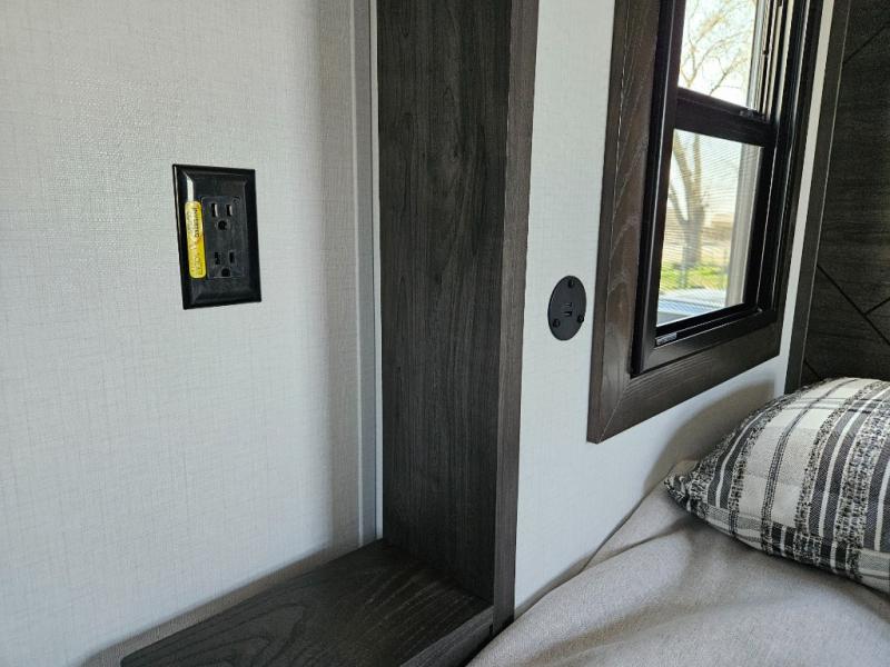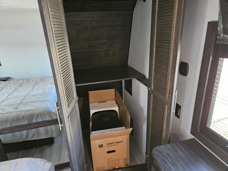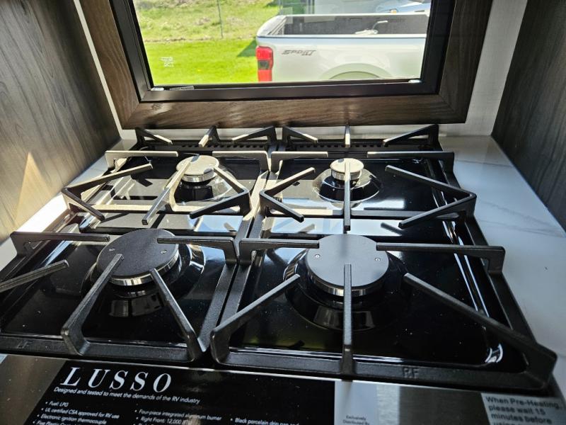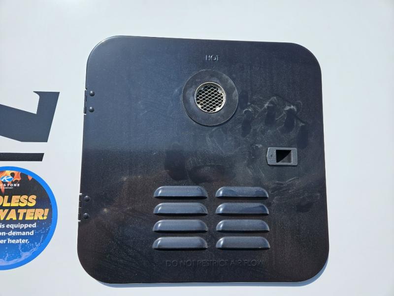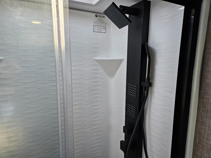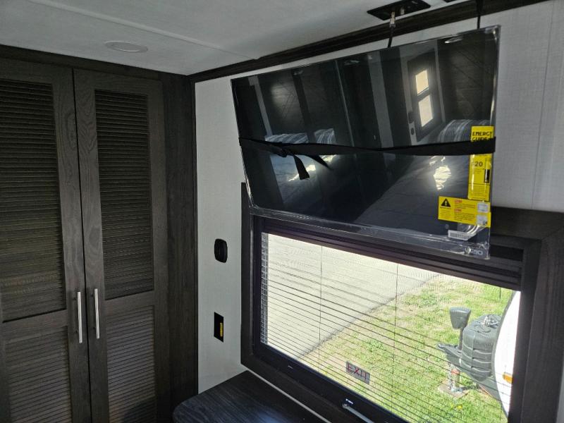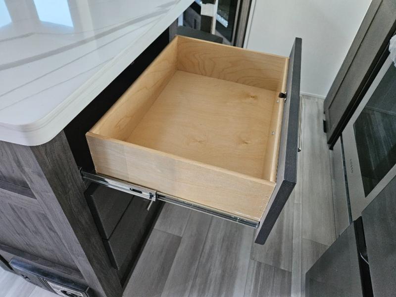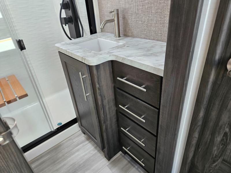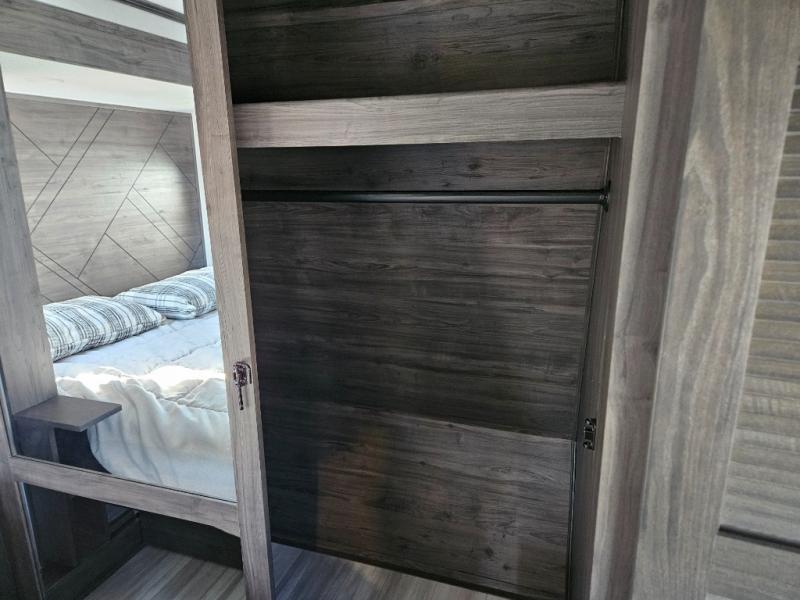 Don't leave your favorite off-road toys behind, simply load them up with the 8' MORryde powered ramp door into the 11' garage area of this toy hauler! The garage area isn't just for your toys, it's for eating, sleeping, and entertaining too with dual opposing sofas with a queen bed above them, a loft with a bunk mat, an LED TV, and even a half bathroom for your convenience. The residential four person sofa slide comes with heat, massage, and 110V/USB ports for an ultimate relaxing evening across from the entertainment center with pantries on either side to store your snacks. The kitchen island table has swing-out stools for you to enjoy a cup of coffee at in the mornings and the dual entry bathroom has a residential shower with a seat to freshen up. It even leads directly into the front private bedroom which has a Fuzion king bed slide across from a dresser with an LED TV and a front master closet with washer and dryer prep!