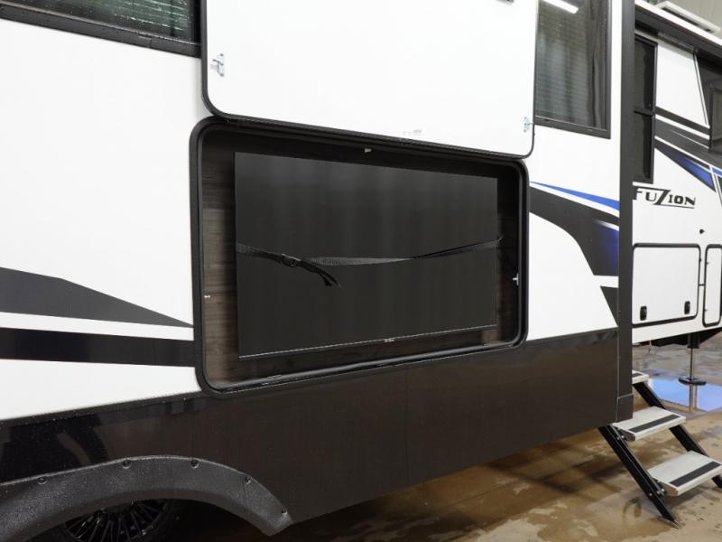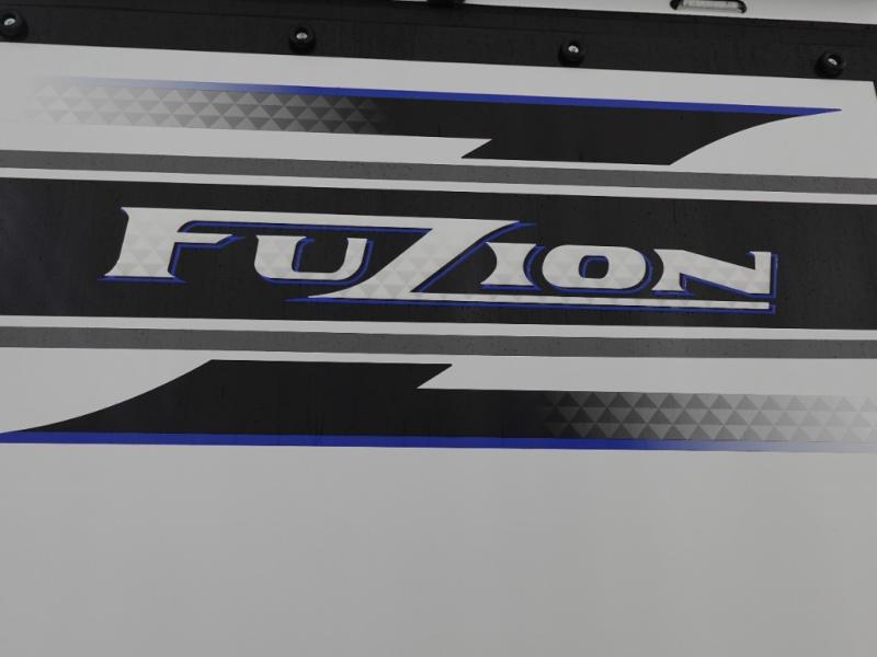 Get your adrenaline pumping with any one of these Keystone RV Fuzion fifth wheel toy haulers! The frame welded, Adjust-A-Trac tie-downs have 38 points to fully secure your toys as you travel, and the extended garage lengths have outside storage so you can haul bigger toys. A fully enclosed fuel pump station is integrated with the iN-Command Generation 3 control system with Global Connect. And the exclusive Omni-Chill technology offers high-efficiency air conditioning and maximum cooling. The interior provides fiberglass backed linoleum flooring, extra-tall slide height, solid wood cabinet and drawer frames, and extra tall ceilings with crown molding to mention a few luxuries. Outside, you'll find three Girard cassette awnings, 4k framed tinted safety glass windows, a Titan hydraulic leveling system, and many more conveniences!