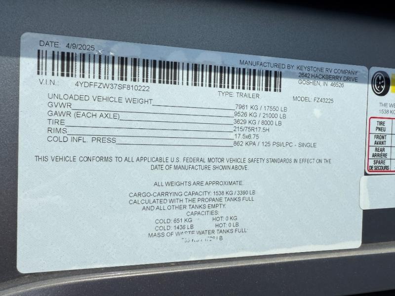 New 2025 Keystone RV Fuzion 432 Toy Hauler Fifth Wheel