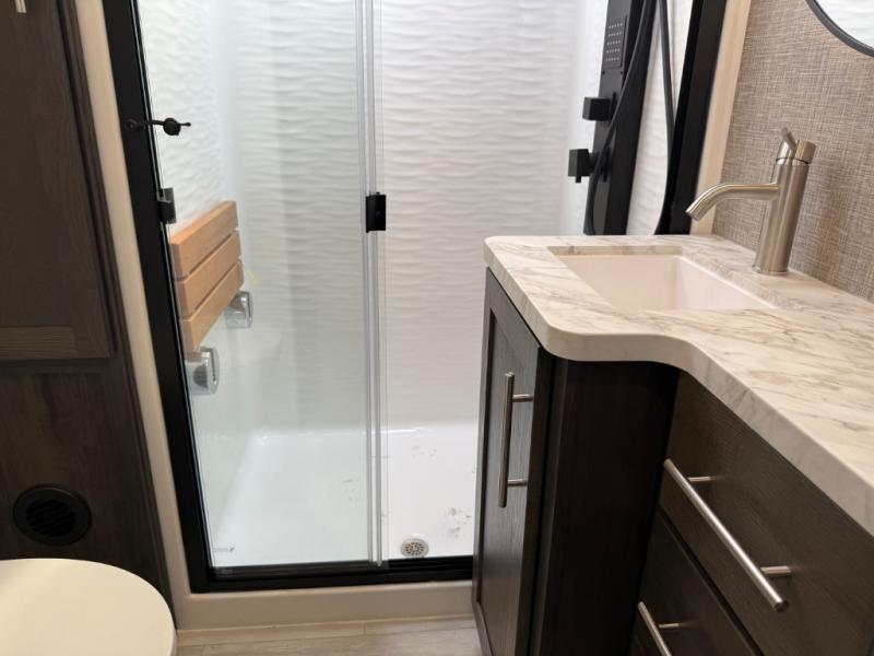Get your adrenaline pumping with any one of these Keystone RV Fuzion fifth wheel toy haulers! The frame welded, Adjust-A-Trac tie-downs have 38 points to fully secure your toys as you travel, and the extended garage lengths have outside storage so you can haul bigger toys. A fully enclosed fuel pump station is integrated with the iN-Command Generation 3 control system with Global Connect. And the exclusive Omni-Chill technology offers high-efficiency air conditioning and maximum cooling. The interior provides fiberglass backed linoleum flooring, extra-tall slide height, solid wood cabinet and drawer frames, and extra tall ceilings with crown molding to mention a few luxuries. Outside, you'll find three Girard cassette awnings, 4k framed tinted safety glass windows, a Titan hydraulic leveling system, and many more conveniences!