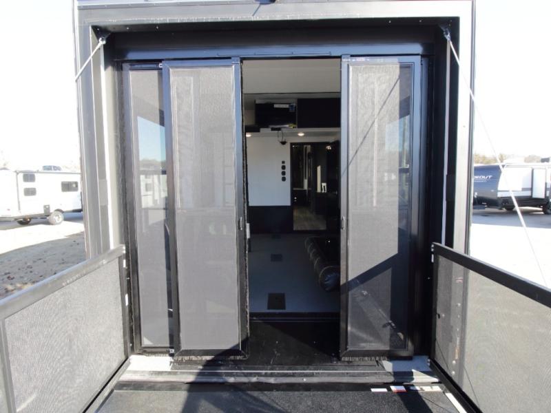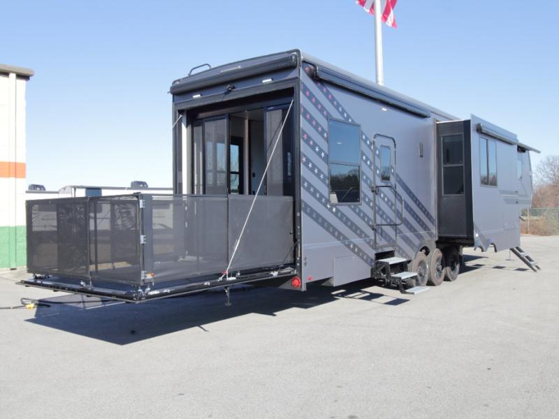 Adventure is just around the corner in this triple slide out, triple axle toy hauler!