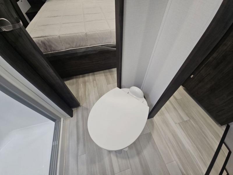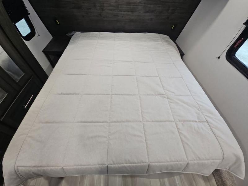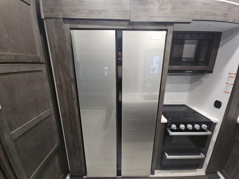 Embrace the great outdoors with a Fuzion Impact Edition toy hauler by Keystone! There are laminated fiberglass sidewalls and a 8' 4" wide-body construction for your toys and gear! The one-piece polypropylene heated underbelly includes enclosed tanks and valves which will help extend your camping season, and the leaf spring suspension system will provide smooth towing. Head inside to enjoy night shades, hardwood cabinetry, and fiberglass backed linoleum floor with no carpet for easy cleaning. Each model also includes a Girard on-demand water heater, two 30 lb. LP tanks, recessed LED puck lighting throughout, and the list of comforts goes on!