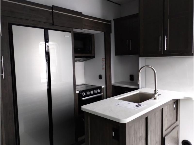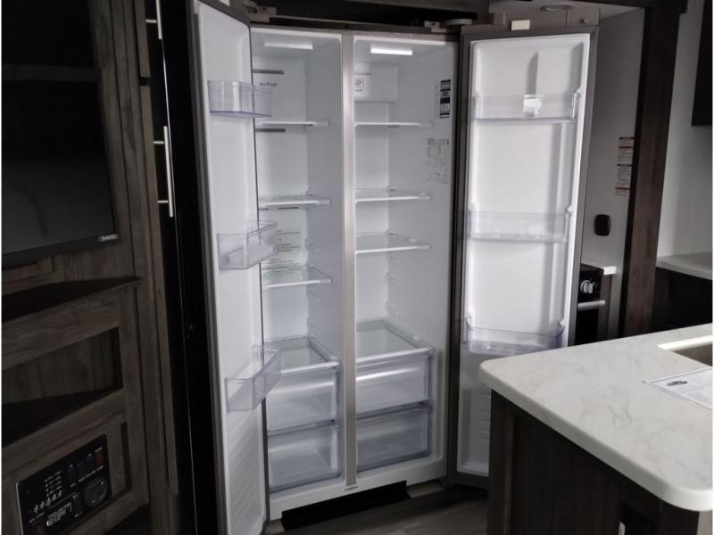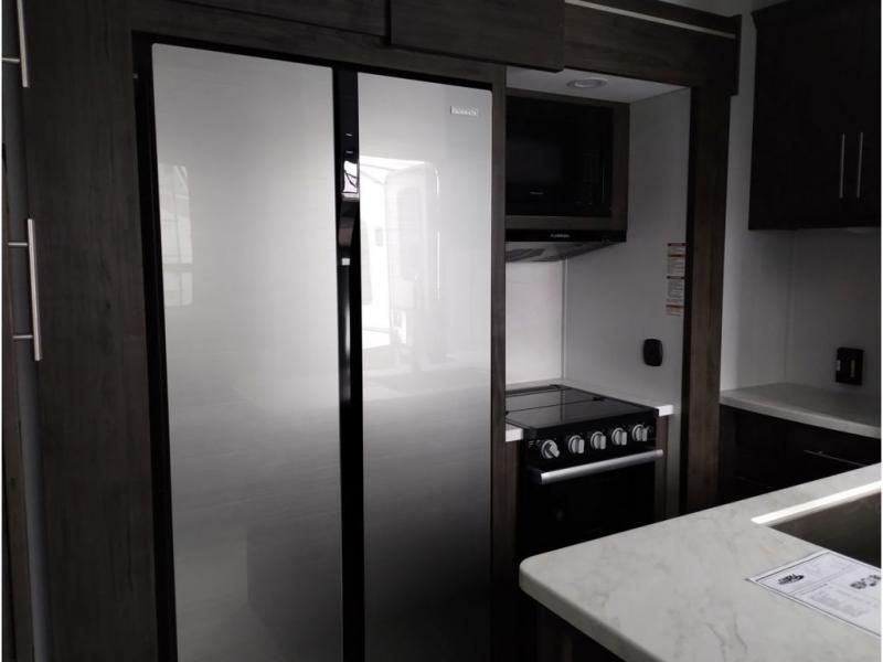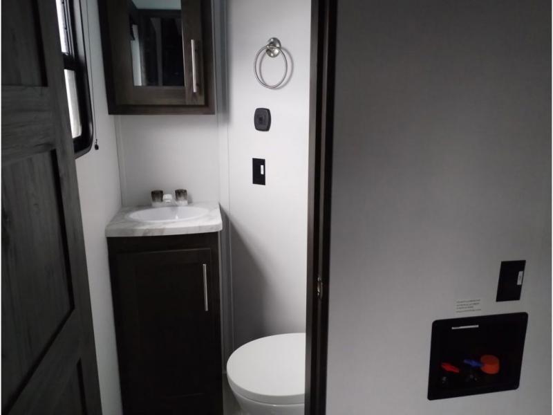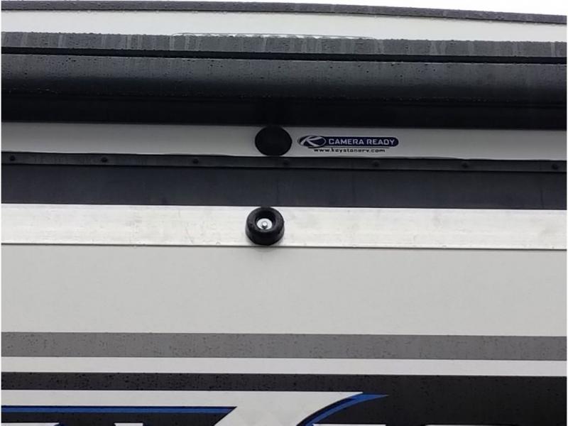 Embrace the great outdoors with a Fuzion Impact Edition toy hauler by Keystone! There are laminated fiberglass sidewalls and a 8' 4" wide-body construction for your toys and gear! The one-piece polypropylene heated underbelly includes enclosed tanks and valves which will help extend your camping season, and the leaf spring suspension system will provide smooth towing. Head inside to enjoy night shades, hardwood cabinetry, and fiberglass backed linoleum floor with no carpet for easy cleaning. Each model also includes a Girard on-demand water heater, two 30 lb. LP tanks, recessed LED puck lighting throughout, and the list of comforts goes on!