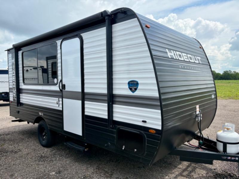 Open your horizons with the Hideout Sport Single Axle travel trailers by Keystone. They are compact, convenient, and lightweight; everything you're looking for in an RV! Each model features an aluminum exterior, tinted safety glass windows, and a Super Flex TPO roof membrane for added durability. The interior includes blackout night shades for added privacy and real wood doors and drawers that will give a more at-home touch. The Girard tankless water heater is a feature you won't want to camp without, and the LED lighting will keep your space bright and open!