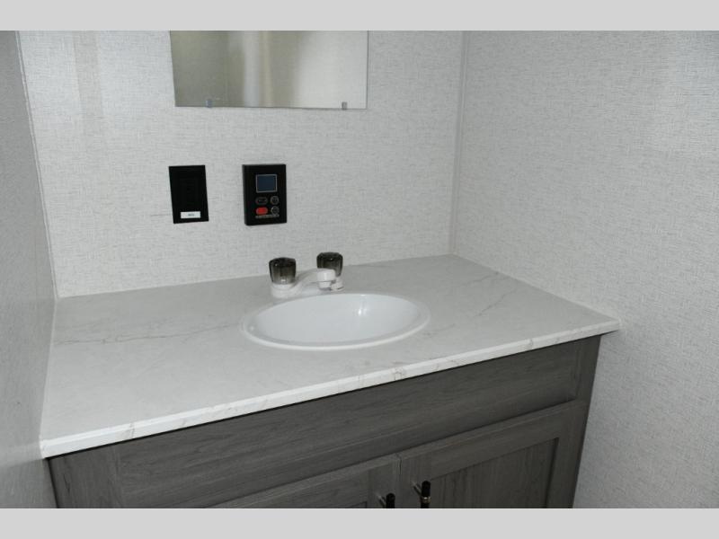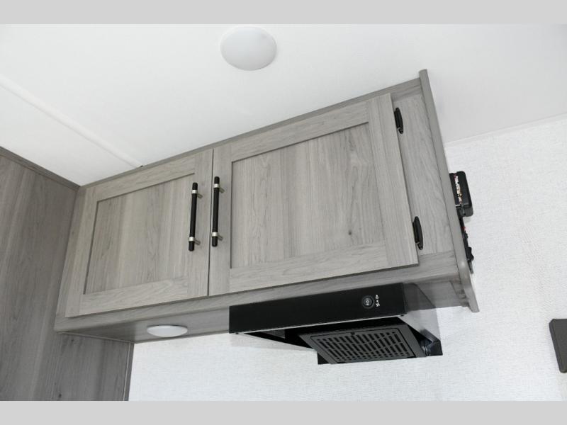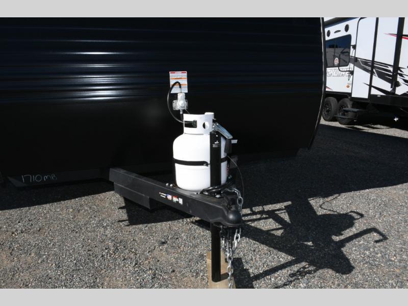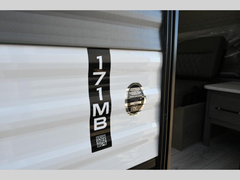 Built for durability and easy travel, the Hideout Sport 171MB features aluminum exterior construction, tinted safety glass windows, and a Super Flex TPO roof membrane. Inside, blackout night shades, solid wood doors and drawers, a Girard tankless water heater, and LED lighting combine practicality with a home-like feel.