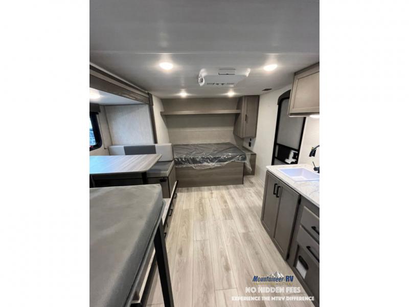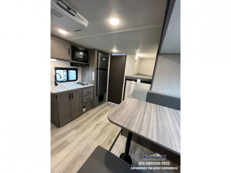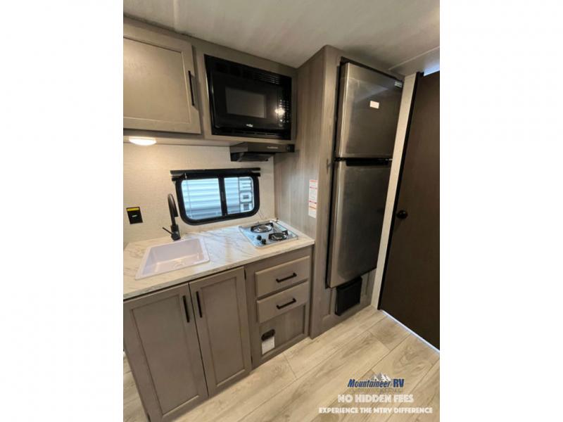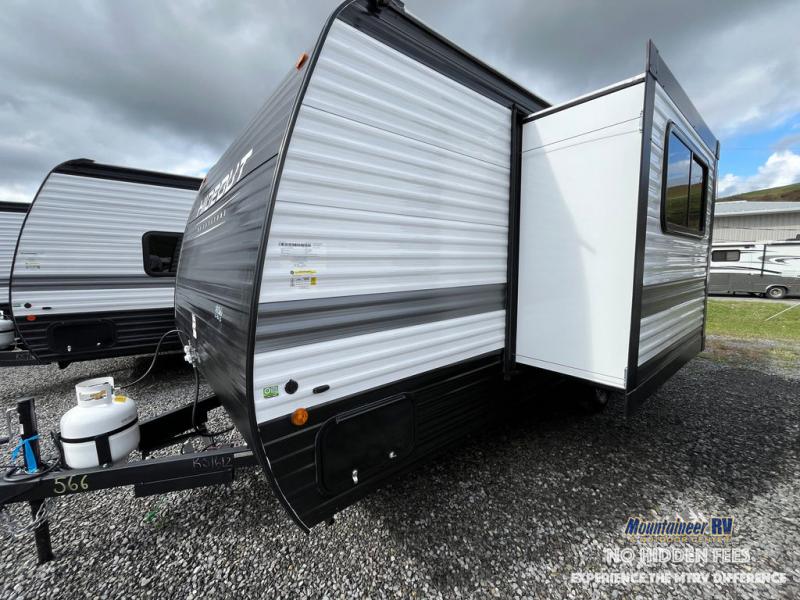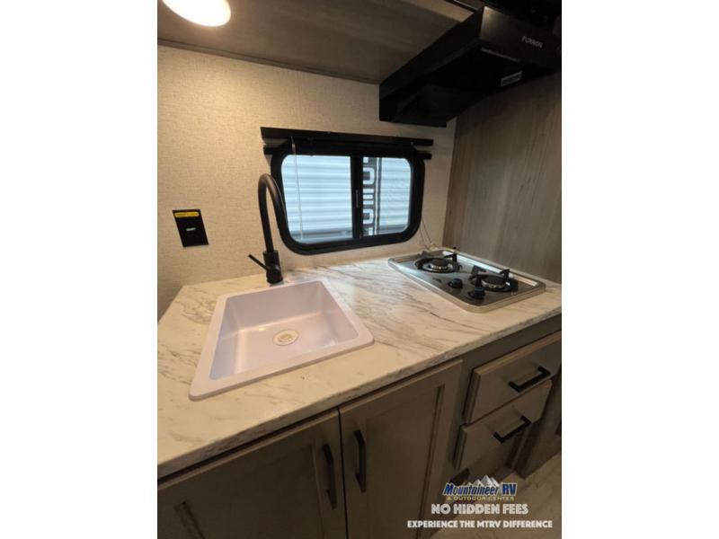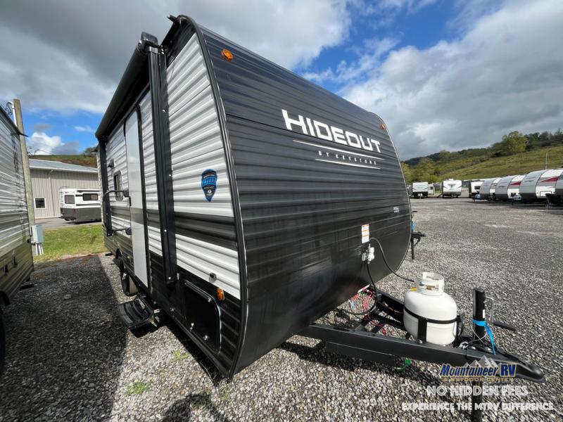 Open your horizons with the Hideout Sport Single Axle travel trailers by Keystone. They are compact, convenient, and lightweight; everything you're looking for in an RV! Each model features an aluminum exterior, tinted safety glass windows, and a Super Flex TPO roof membrane for added durability. The interior includes blackout night shades for added privacy and solid wood doors and drawers that will give a more at-home touch. The Girard tankless water heater is a feature you won't want to camp without, and the LED lighting will keep your space bright and open!