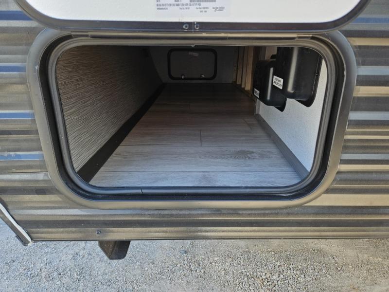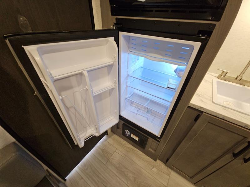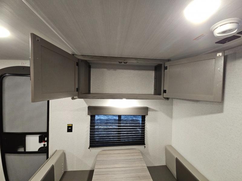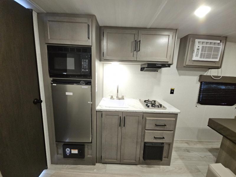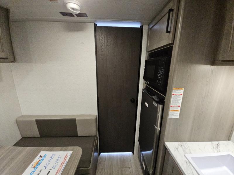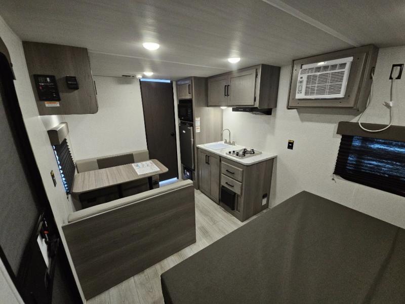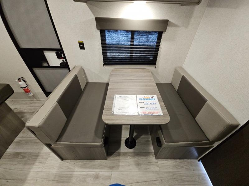 It's time to enjoy the great outdoors with family and friends at the campgrounds you like to meet everyone at! This trailer will allow three to four to camp comfortability with amenities such as a two burner cooktop, a 3.3 cu. ft. refrigerator, and a spacious rear full bathroom. The booth dinette offers a place to dine, read a book and even house an overnight guest. This model also includes a walk-around queen bed that will make your space feel a little more like home!