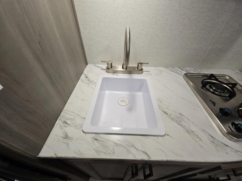 Open your horizons with the Hideout Sport Single Axle travel trailers by Keystone. They are compact, convenient, and lightweight; everything you're looking for in an RV! Each model features an aluminum exterior, tinted safety glass windows, and a Super Flex TPO roof membrane for added durability. The interior includes blackout night shades for added privacy and solid wood doors and drawers that will give a more at-home touch. The Girard tankless water heater is a feature you won't want to camp without, and the LED lighting will keep your space bright and open!