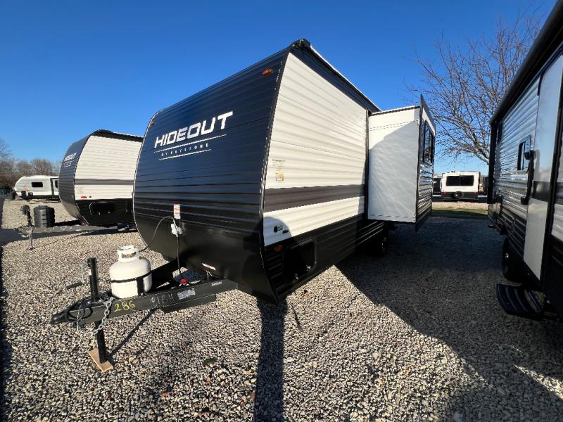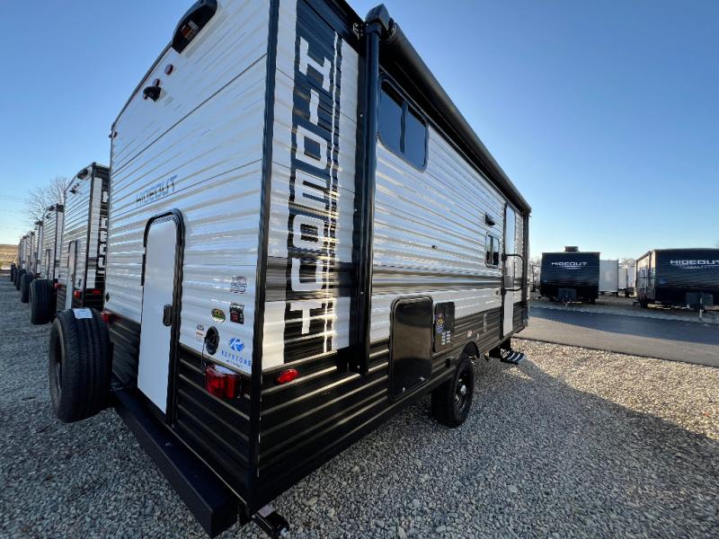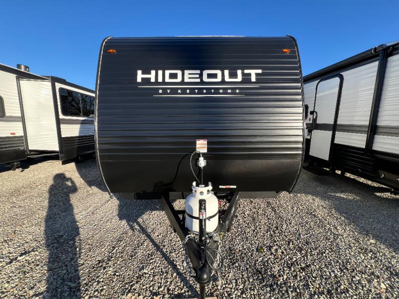 The Keystone Hideout travel trailers will be just what the doctor ordered for a stress-free holiday at your favorite campsite! There are a few exclusive features that you'll only find on a Keystone product, like the in-floor heating ducts, and the Tru-fit™ slide construction. Each model has a power awning for some shade in the afternoon, and the tinted safety glass windows will prevent the harmful UV rays from getting inside. You'll also have blackout night shades that you can close when you want privacy and one-piece pressed countertops that are not only sleek looking, but easy to keep clean.