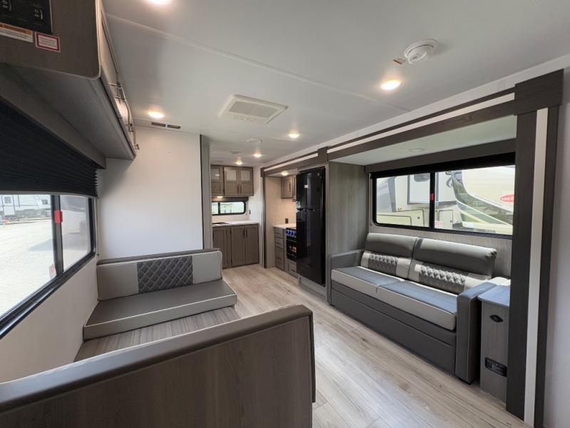 FRONT QUEEN BED with a FULL REAR CORNER BATH and a BOOTH DINETTE! Perfect couples couch, call 843-428-8080 today!