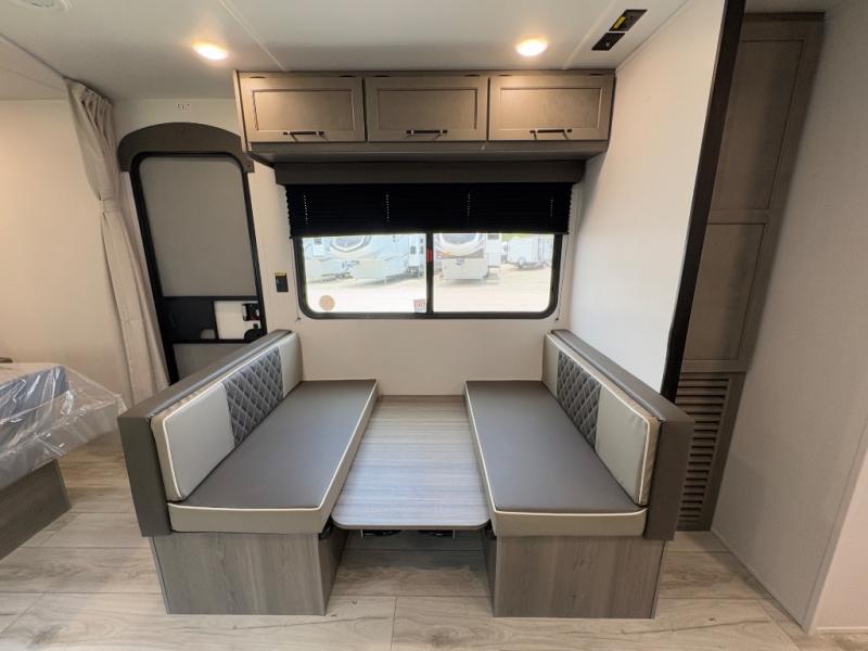 - Booth dinette for meals, games, or additional sleeping space