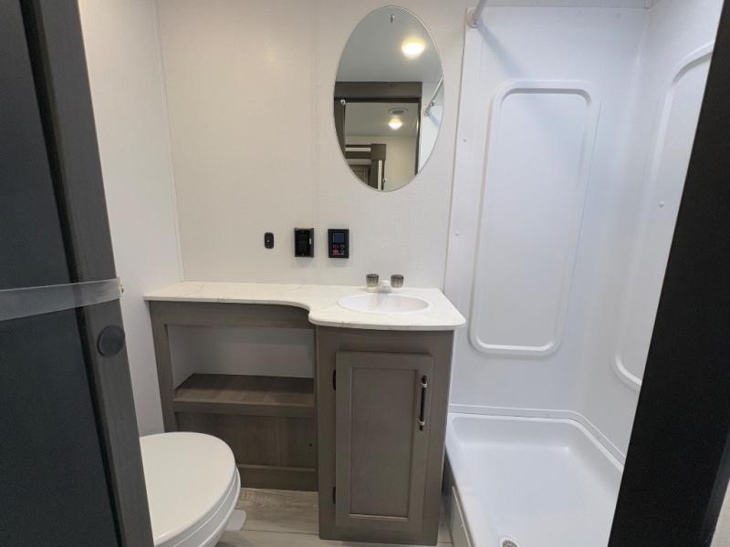 - Rear corner bathroom with spacious shower and convenient layout
