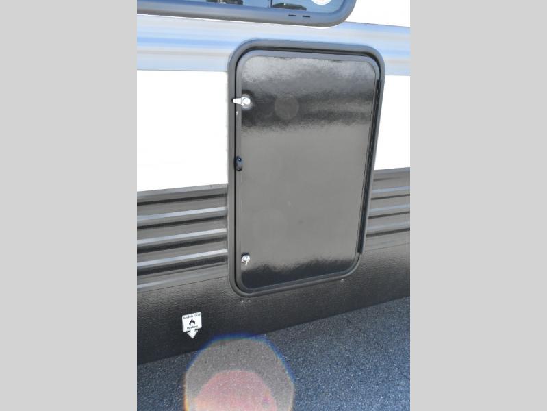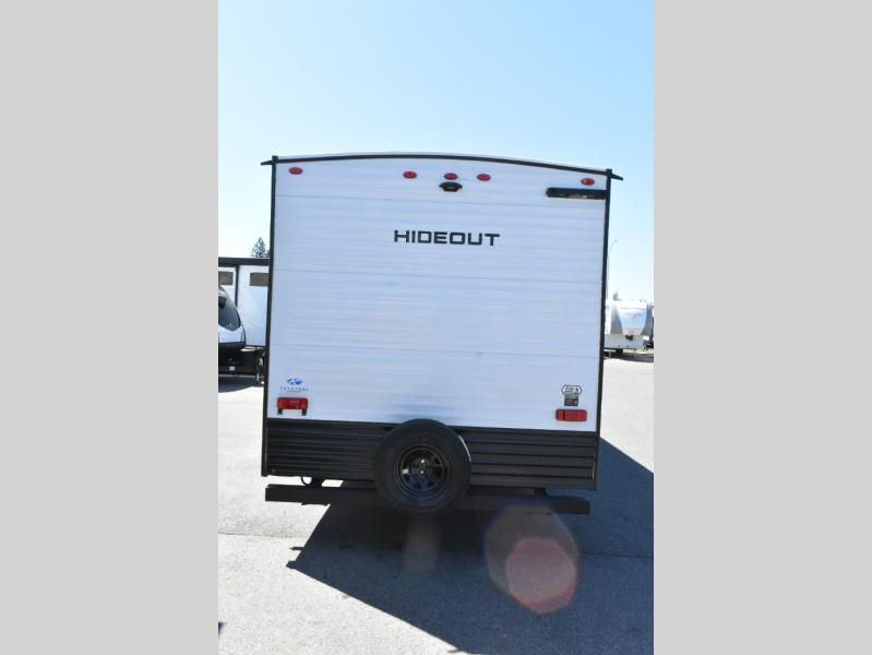You can hide out for days at a time with this Hideout travel trailer! There is a slide out for extra living space, and here you'll find the booth dinette and tri-fold sofa. The rear bathroom is large and accommodating with its large countertop, spacious shower, and linen closet. The front private bedroom has a queen-size bed with a laundry chute right next to it for keeping your dirty laundry hidden. You will also enjoy the 16' awning outdoors where you can visit in the shade!