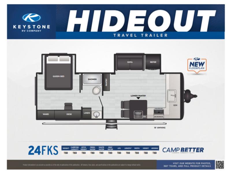 New 2025 Keystone RV Hideout 24FKS Travel Trailer